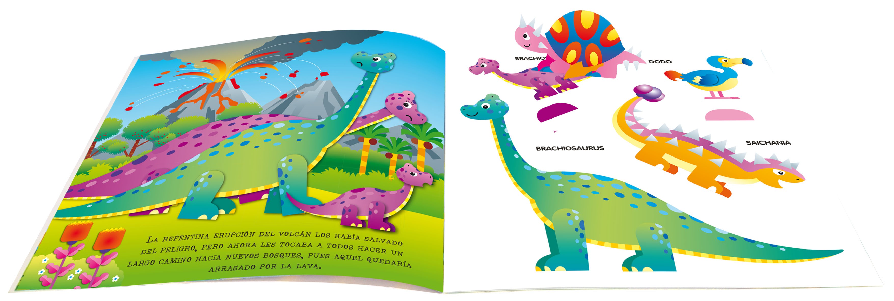 Un pequeño Brachiosaurus y su amigo quieren divertirse por el bosque, pero les acechan muchos peligros, ¿sabrán salir de ellos? Un cuento y dinosaurios pretroquelados para que montes tu propia historia. Además, aprenderás muchas cosas sobre tus dinosaurios preferidos.