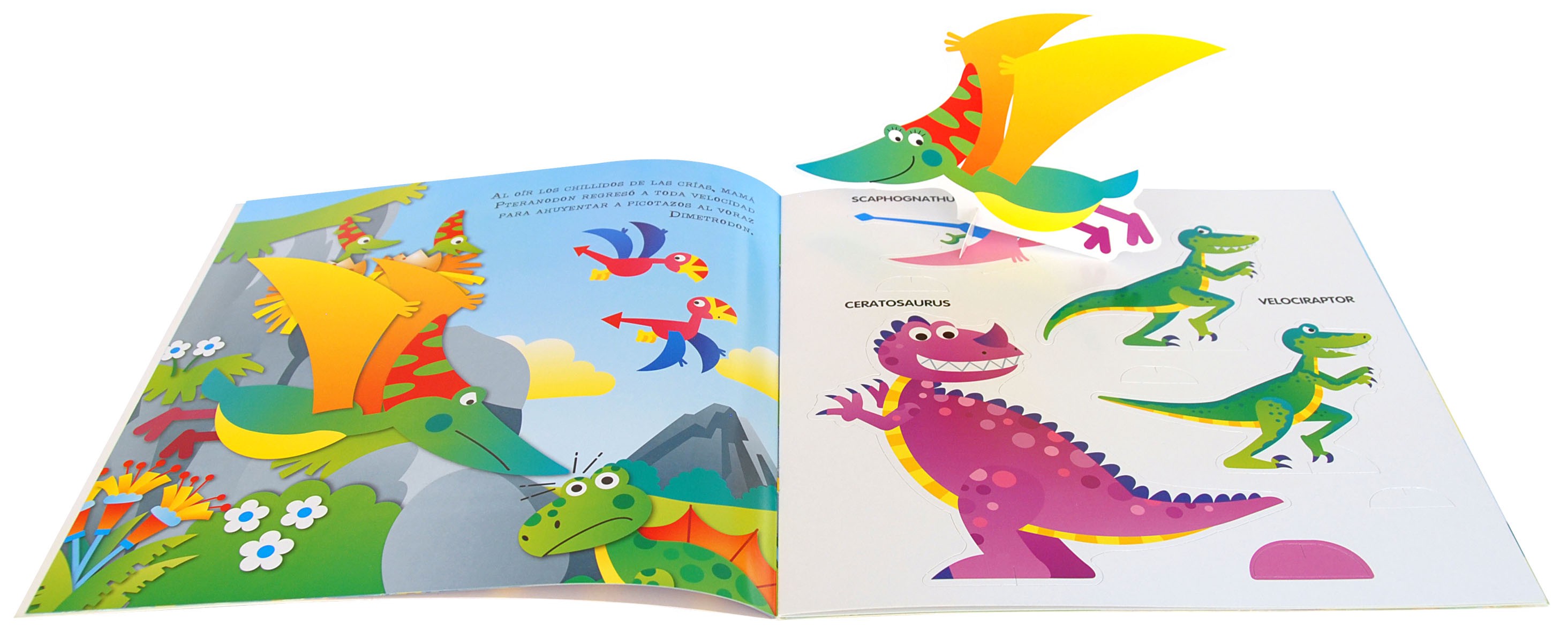 Mamá Pteranodon cuida de sus pequeños, pero le acechan peligros del cielo y de la tierra, ¿sabrá defenderlos de todos ellos? Un cuento y dinosaurios pretroquelados para que montes tu propia historia. Además, aprenderás muchas cosas sobre tus dinosaurios preferidos.