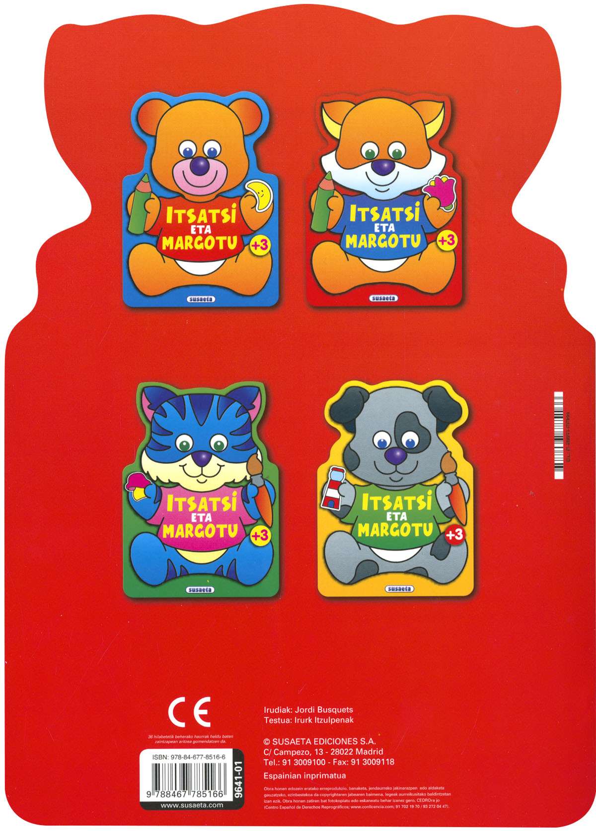 Probatu zure artista gaitasunak eta margotu liburu honetako animaliak; nahi dituzun koloreak erabil ditzakezu, edo barrualdean topatuko dituzun eranskailuen ereduari jarraitu.
