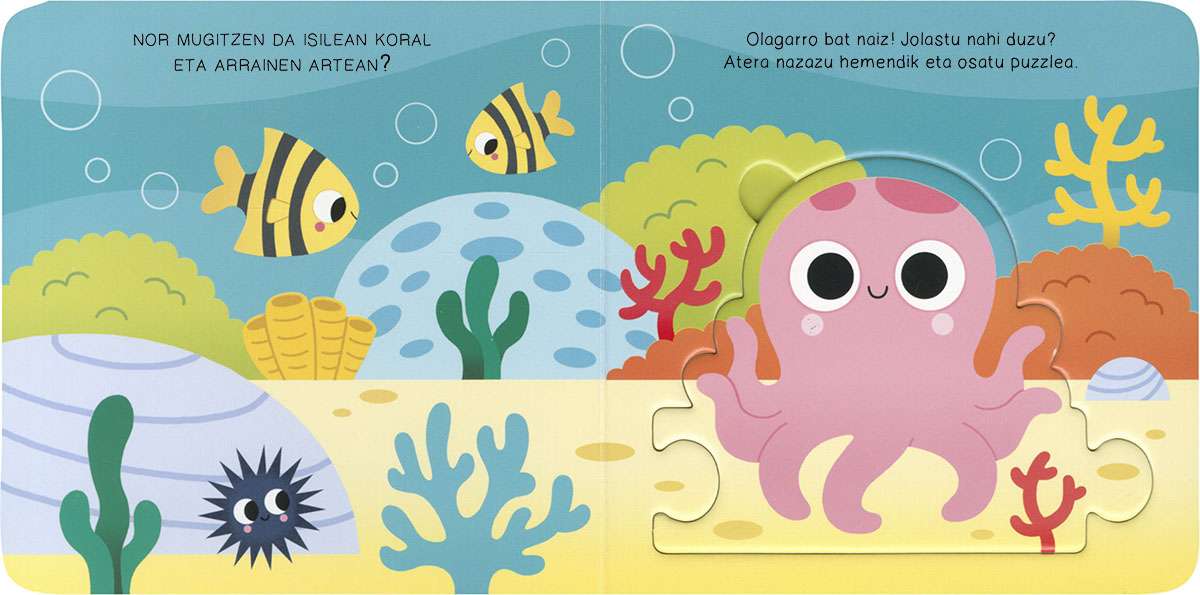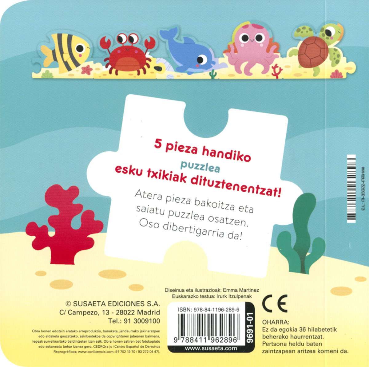 Etxeko txikienentzako liburu zoragarria, non itsasoko animalien zati handiak hartu eta gero serie bat osatzeko elkartu ahal izateko. Testu eder eta laburrak, ilustrazio koloretsuekin batera, irakurleei liburuaz orduz gozatzen lagunduko die.