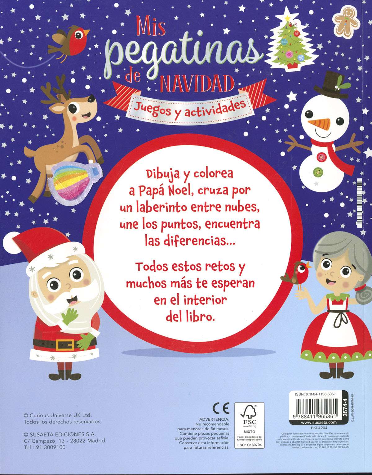 Dibuja y colorea a Papá Noel, cruza por un laberinto entre nubes, une los puntos, encuentra las diferencias... Todos estos juegos y muchos más te esperan en el interior del libro. Encontrarás además pegatinas con purpurina para decorar tus lugares preferidos. ¡Un libro brillante para los pequeños amantes de la Navidad!