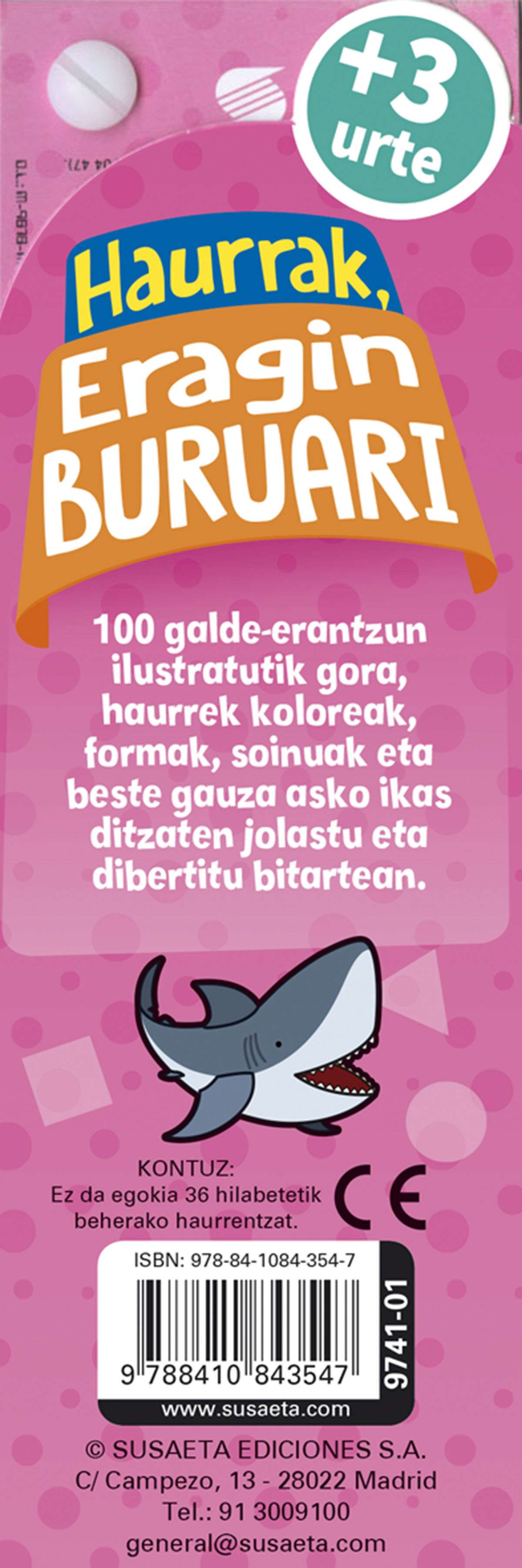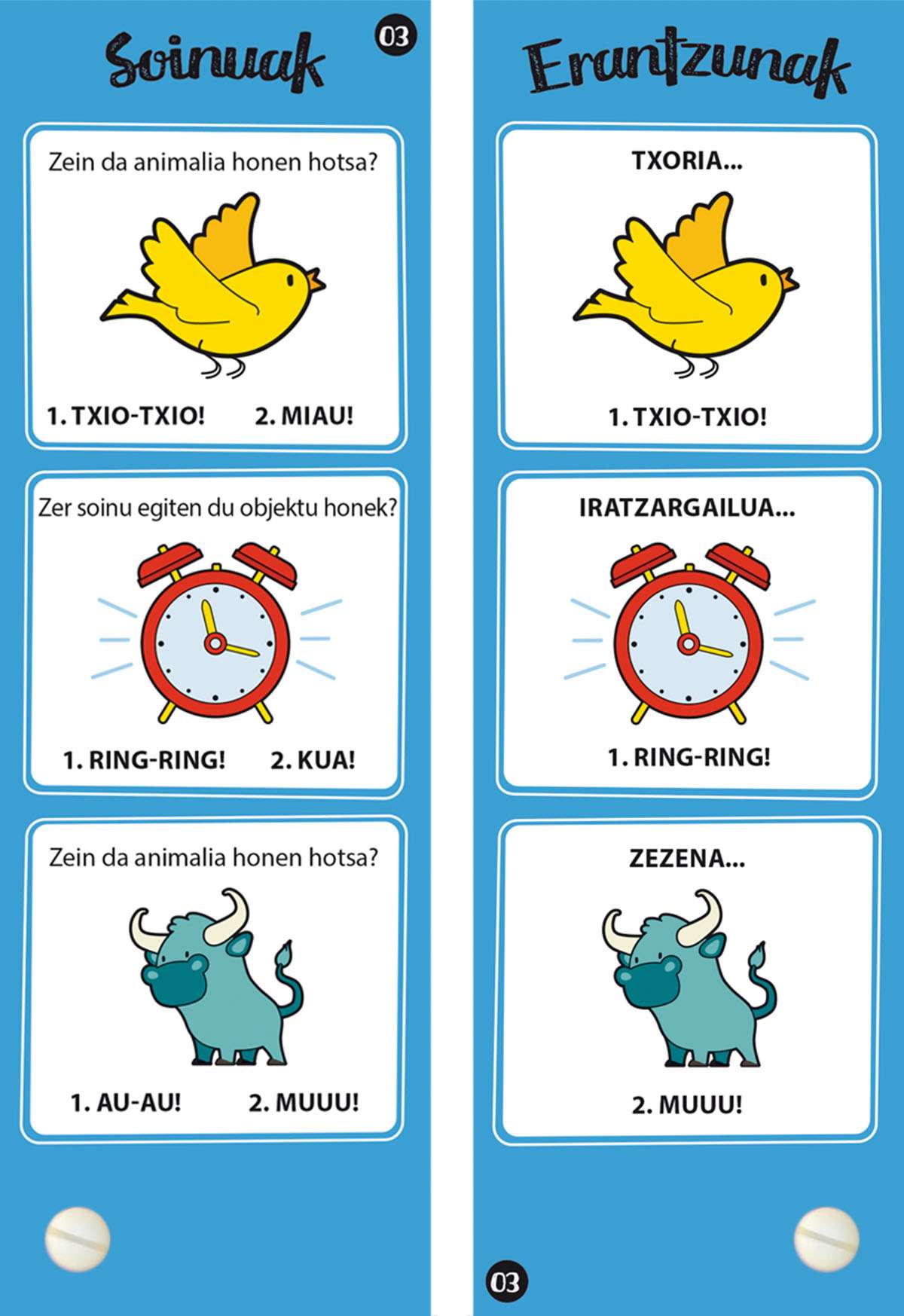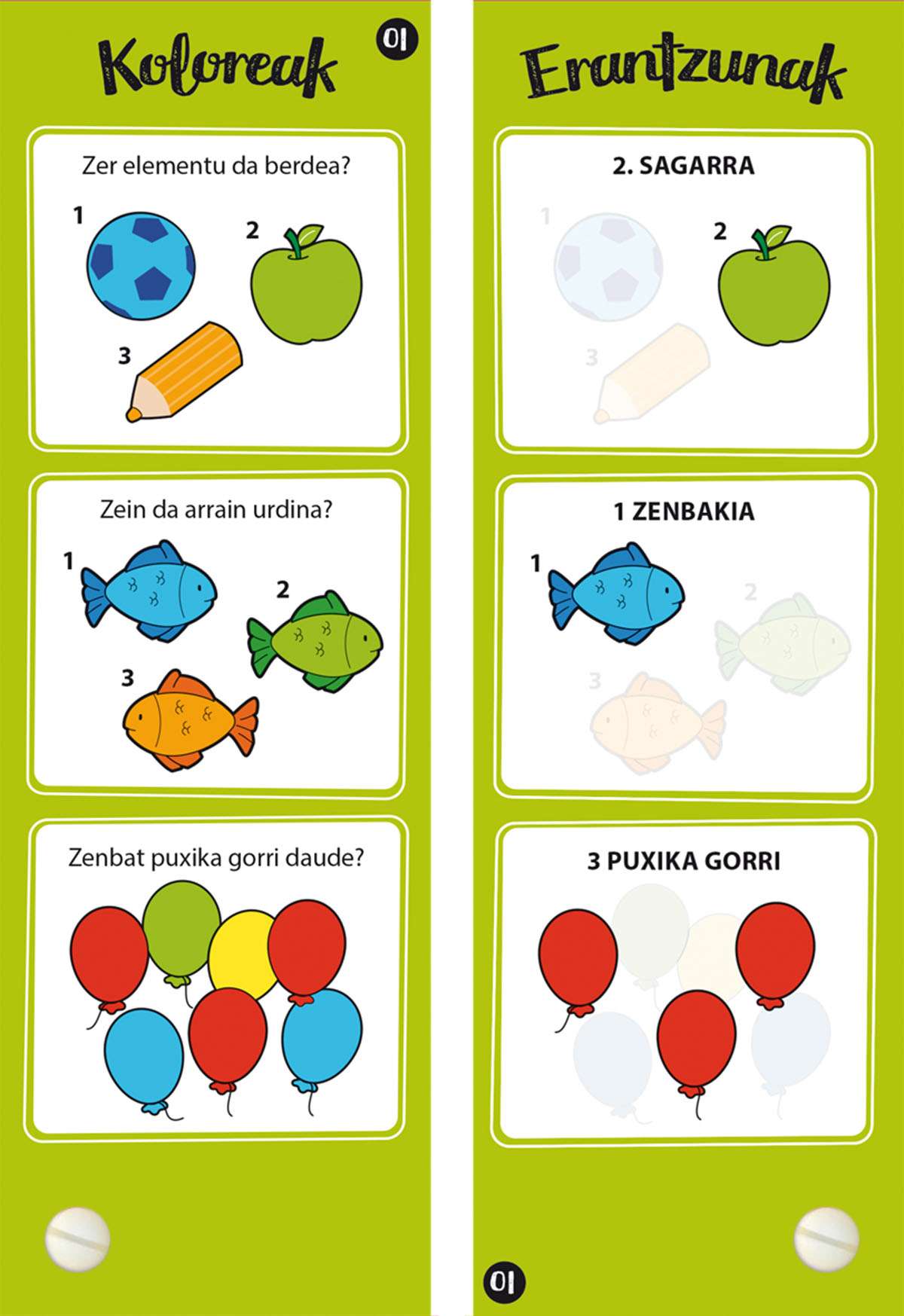 100 galde-erantzun ilustratutik gora, haurrek koloreak, formak, soinuak eta beste gauza asko ikas ditzaten jolastu eta dibertitu bitartean.