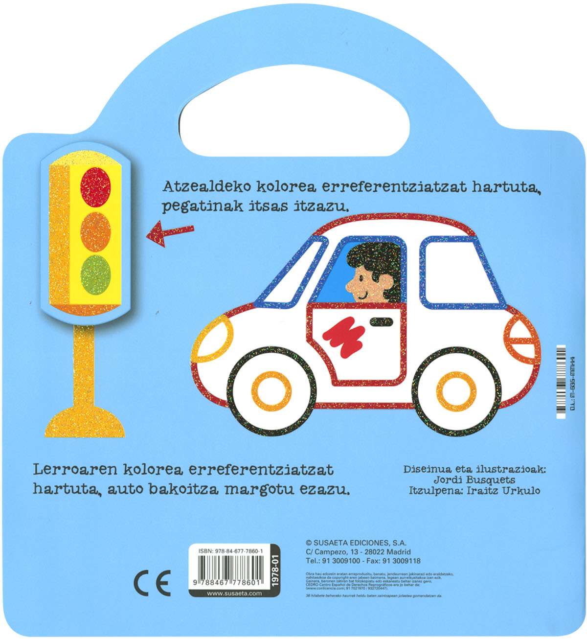 Atzealdeko kolorea erreferentziatzat hartuta, pegatinak itsas itzazu. Lerroaren kolorea erreferentziatzat hartuta, auto bakoitza margotu ezazu.