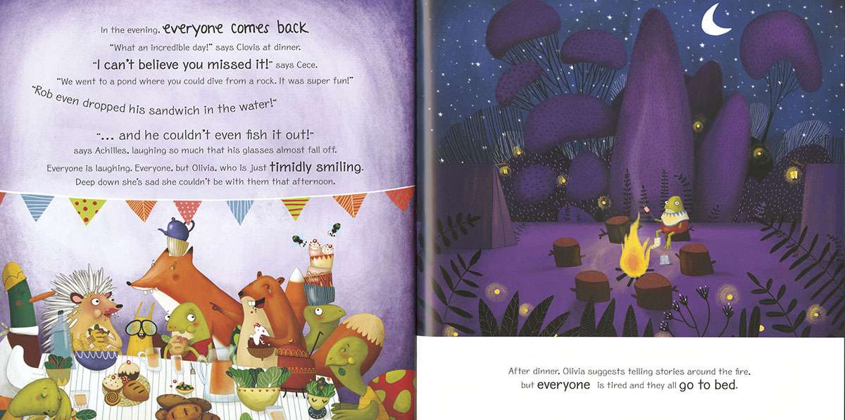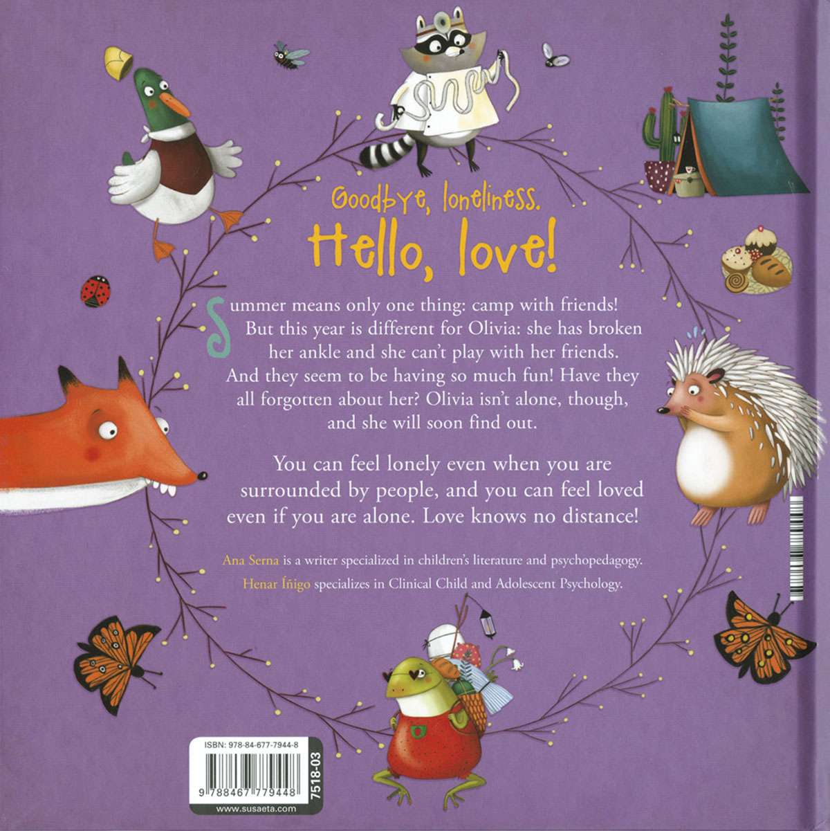 Summer means only one thing: camp with friends! But this year is different for Olivia: she has broken her ankle and she cant play with her friends. And they seem to be having so much fun! Have they all forgotten about her? Olivia isnt alone, though, and she will soon find out. You can feel lonely even when you are surrounded by people, and you can feel loved even if you are alone. Love knows no distance!