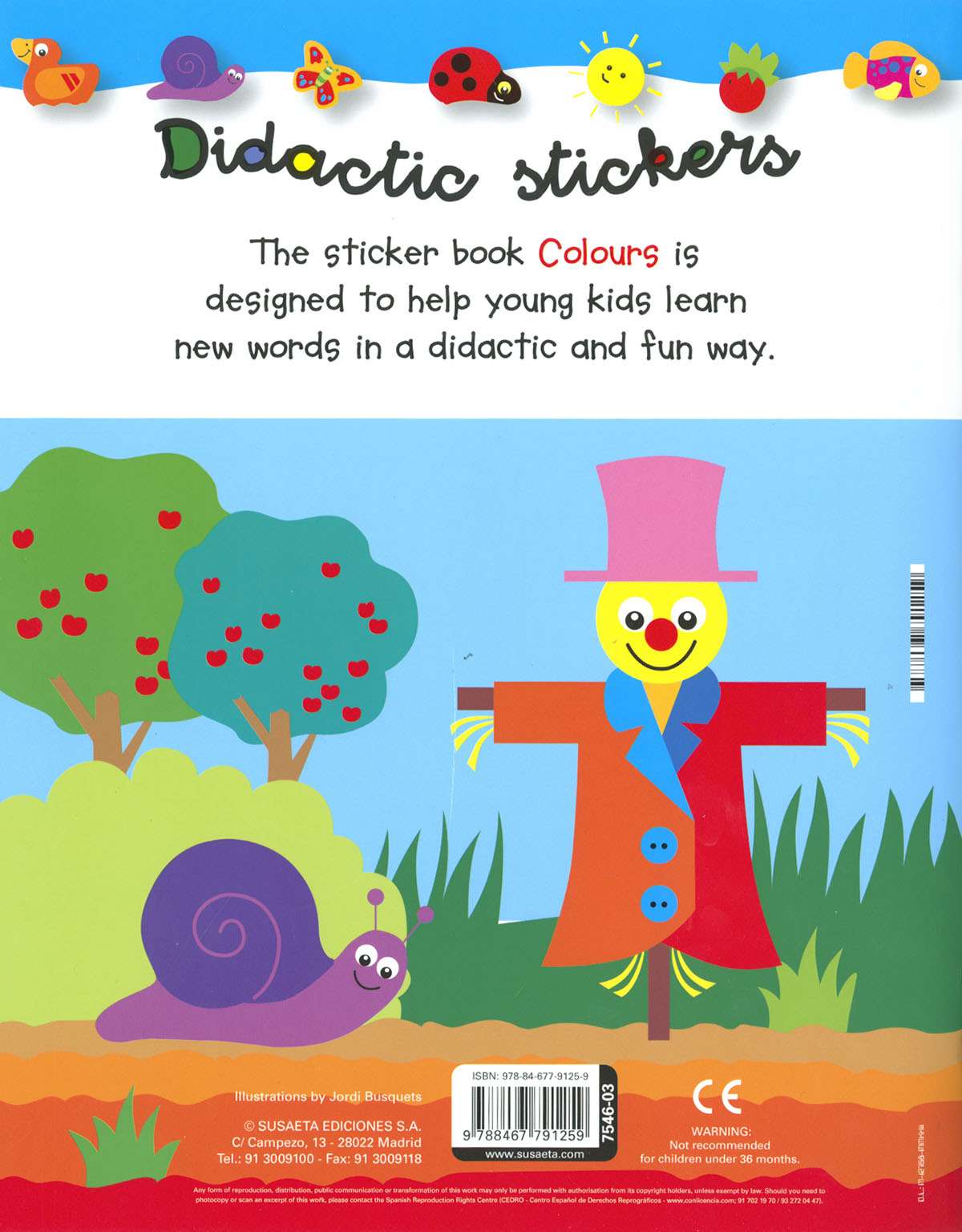 The sticker book Colours is designed to help young kids learn new words in a didactic and fun way.