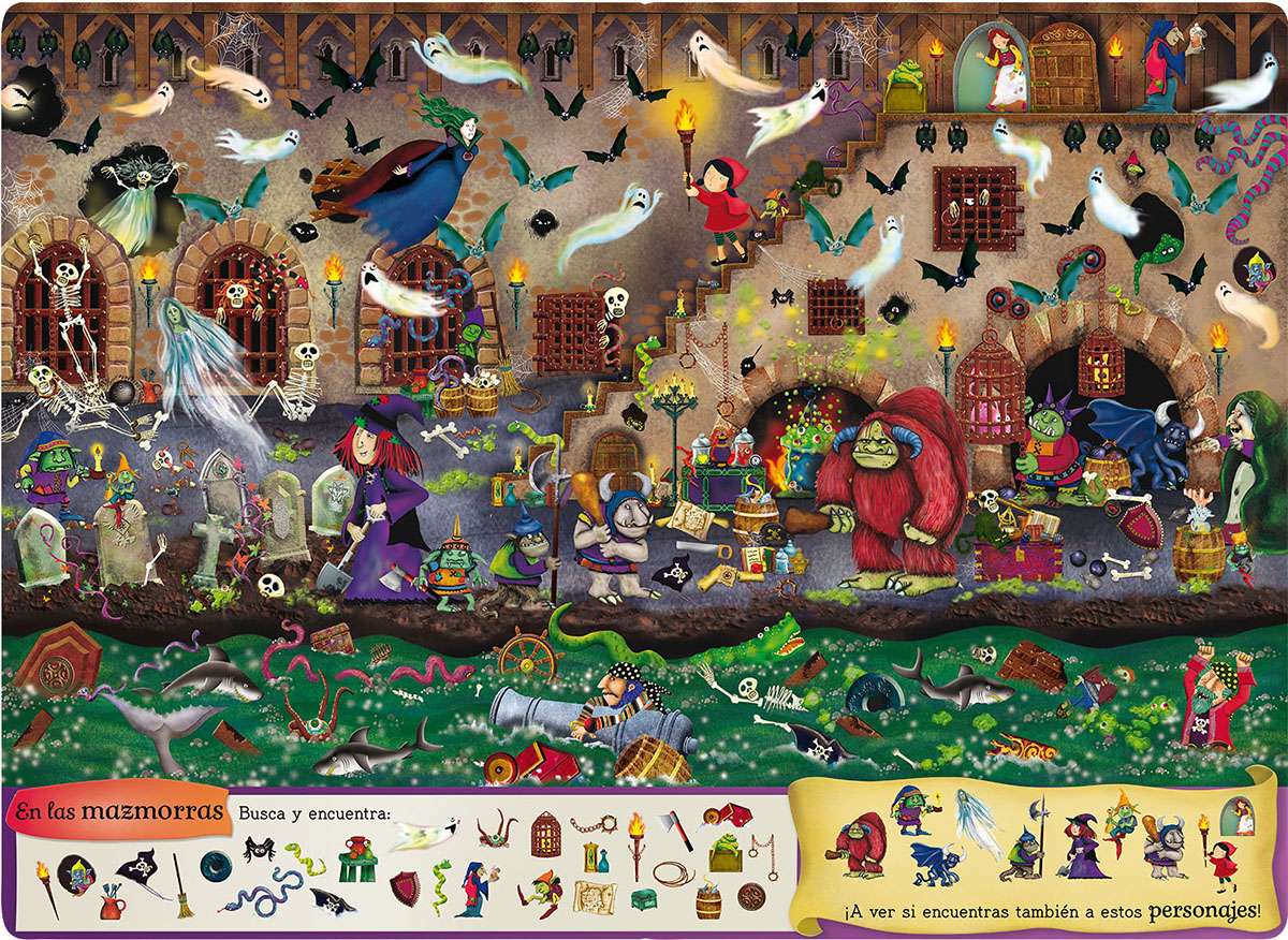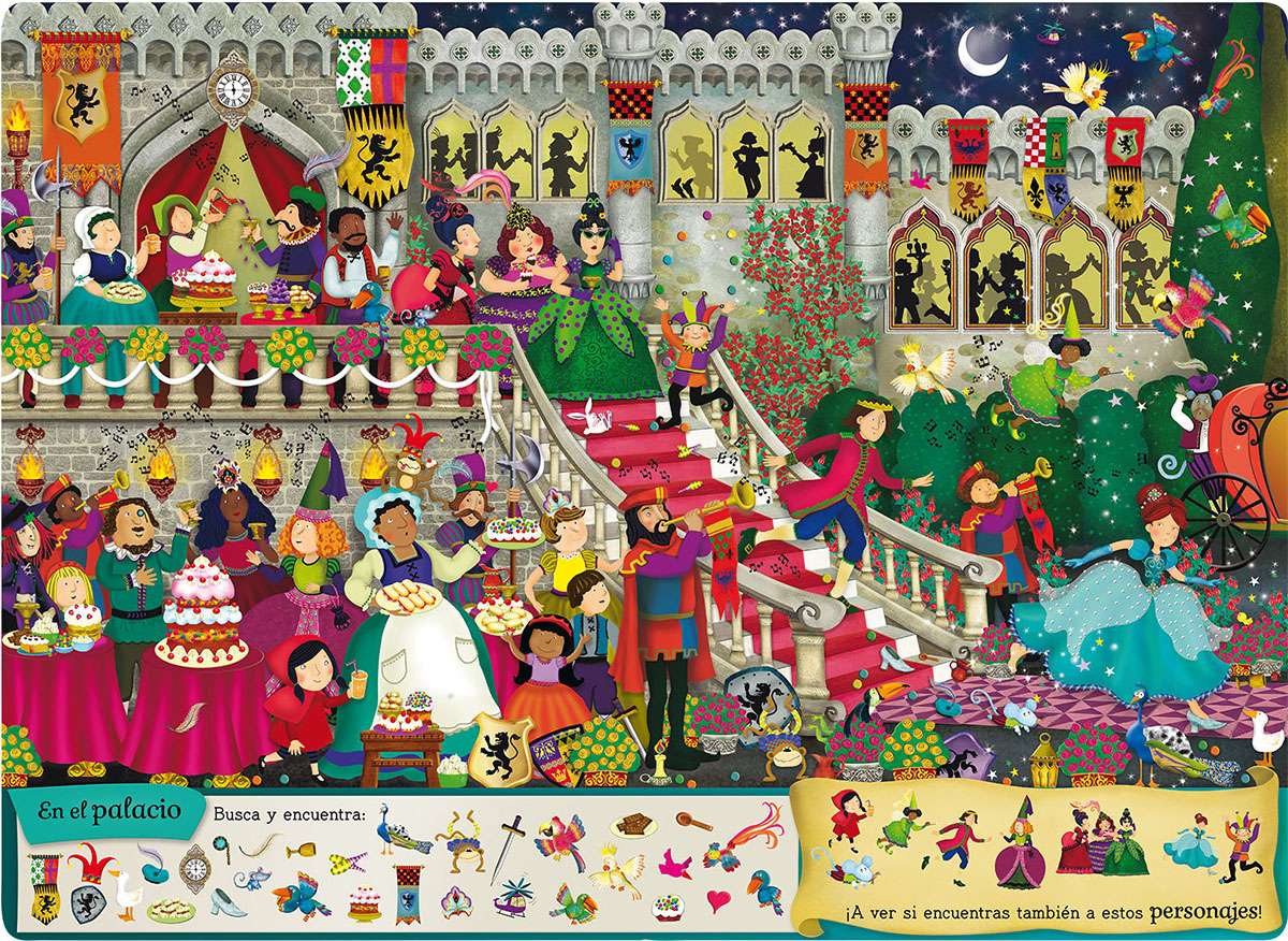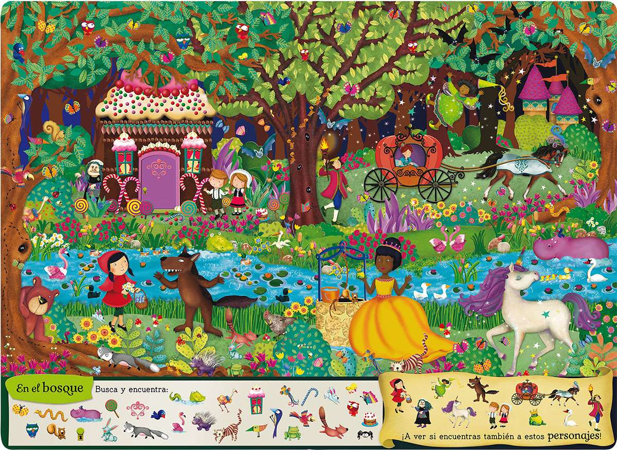 Abre las páginas de este sorprendente libro y busca en las láminas gigantes un montón de personajes y objetos que se han perdido en el mundo de los cuentos de hadas.