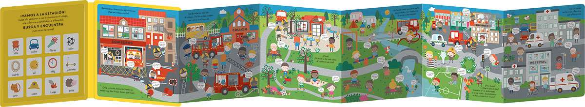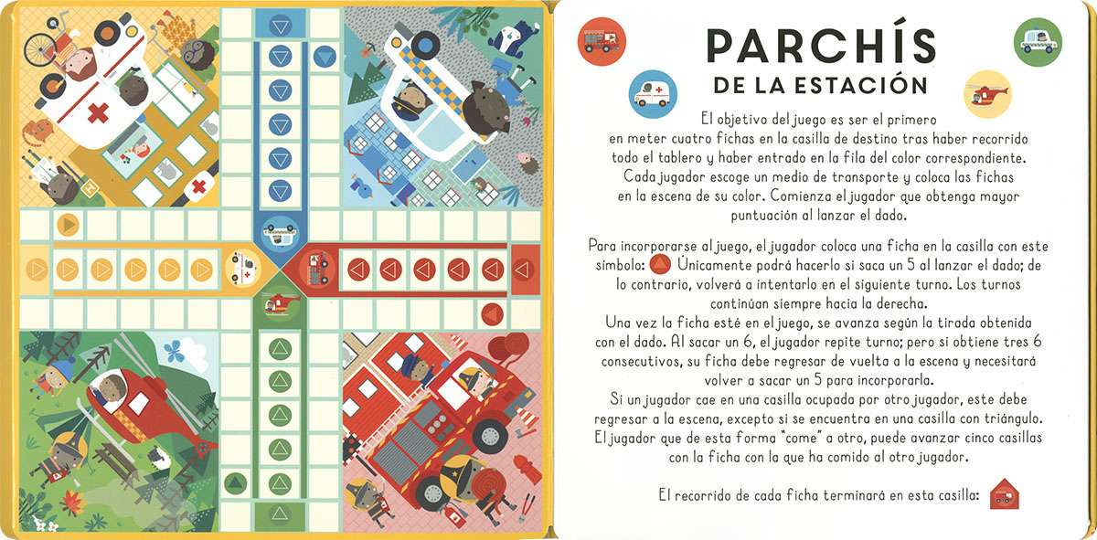 ¡Abre este librp y vive una aventura! Elige un lugar para desplegarlo en el suelo y súbete al camión de bomberos: apagarás incendios, rescatarás gatos ¡y un montón de cosas más! Incluye 2 juegos de mesa con fichas y dado para montar.