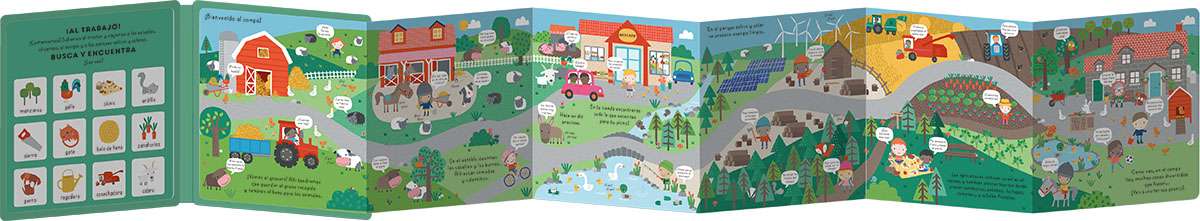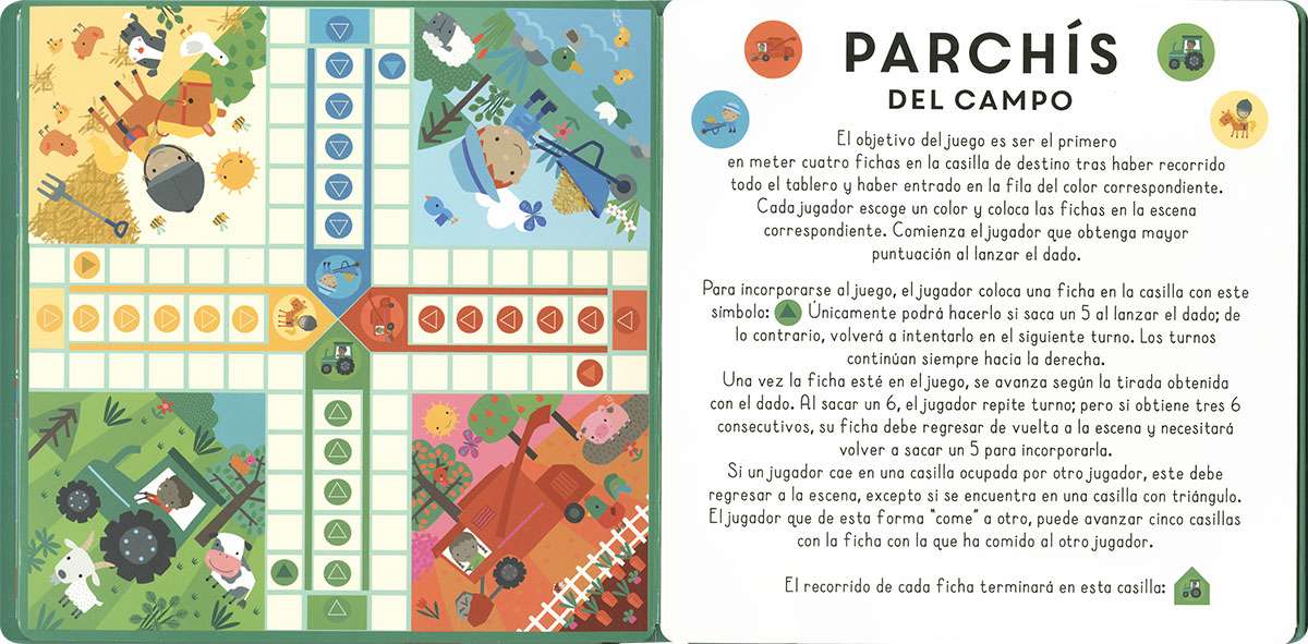 ¡Abre este librp y vive una aventura! Elige un lugar para desplegarlo en el suelo y súbete al tractor: plantarás huertos, darás de comer a los caballos ¡y un montón de cosas más! Incluye 2 juegos de mesa con fichas y dado para montar.