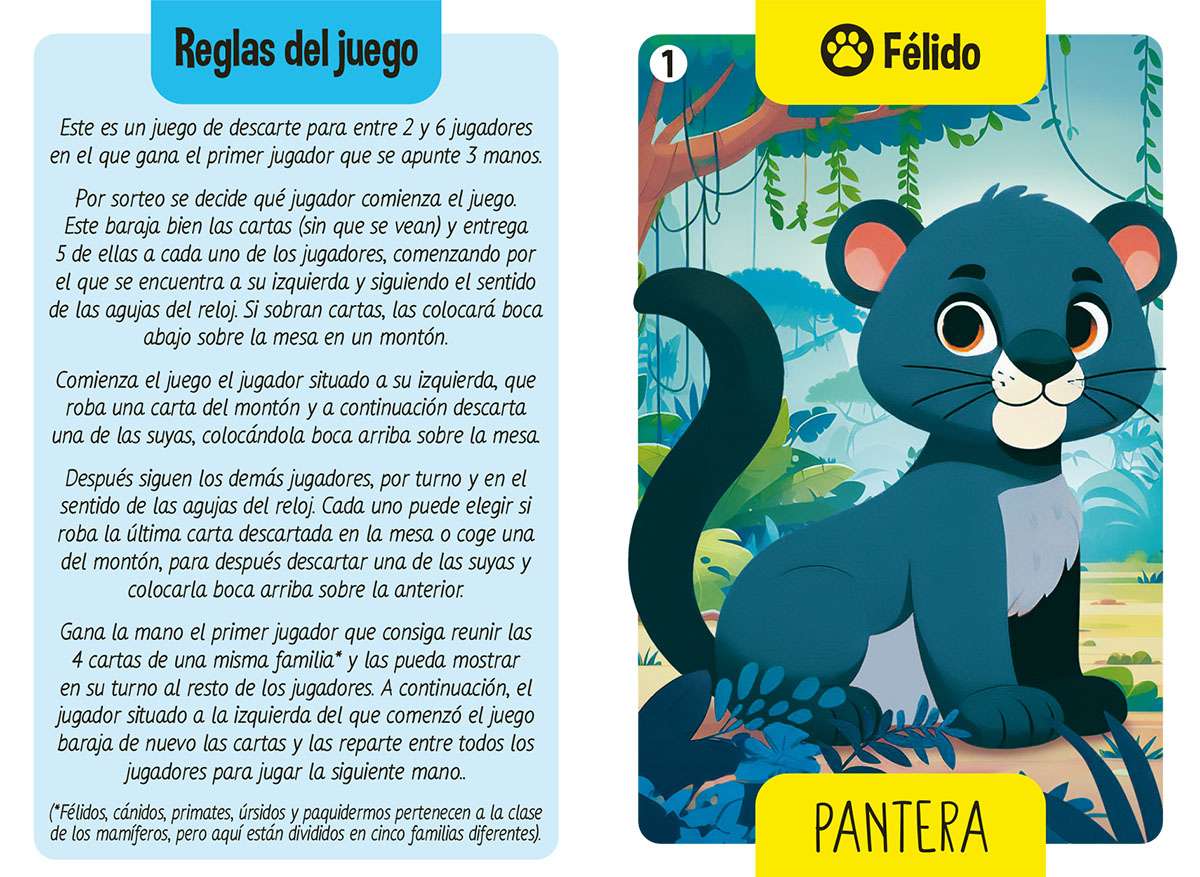 El juego de las familias animales. Un divertido juego con 40 cartas y 10 familias de animales para completar. ¿Te atreves a intentarlo?