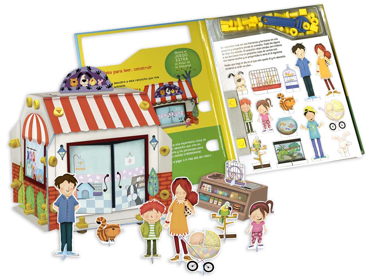 Este libro contiene todo lo que necesitas para representar la historia que se cuenta en el interior: piezas de cartulina, tuercas, tornillos y hasta una llave inglesa. ¡Sin olvidar a los personajes! Juega con las figuras y ¡deja volar tu imaginación!