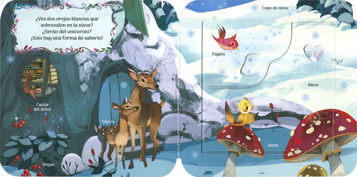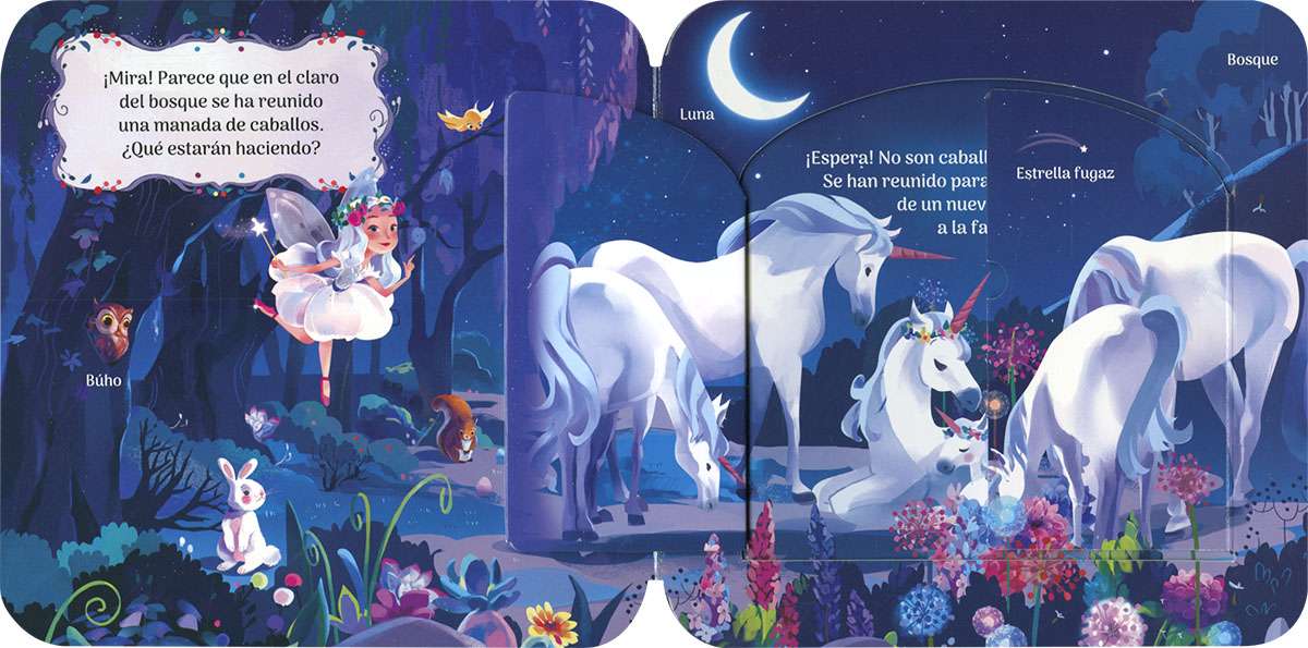 Ayuda al hada a buscar al unicornio y descubre su magia con est elibro de cartón. Contiene solapas en cada escena bajo las que encontrarás un montón de sorpresas.