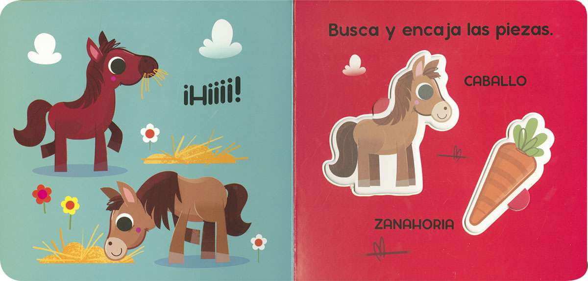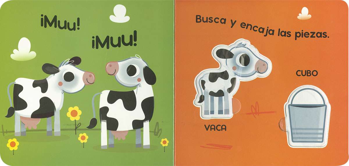 Este paquete infantil contiene un libro de cartón con páginas troqueladas para que el bebé lector encaje en los huecos las figuras de la granja que se incluyen. Desarrolla la motricidad fina, fomenta la coordinación mano-ojo y estimula el razonamiento. Con 12 piezas para encajar, proporciona además una divertida forma de pasar el rato.