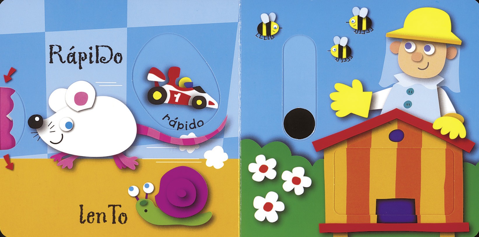 Un libro interactivo con diferentes mecanismos para que los pequeños aprendan los contrarios de una forma divertida. Con páginas de cartón, textos muy sencillos y simpáticas ilustraciones llenas de color.