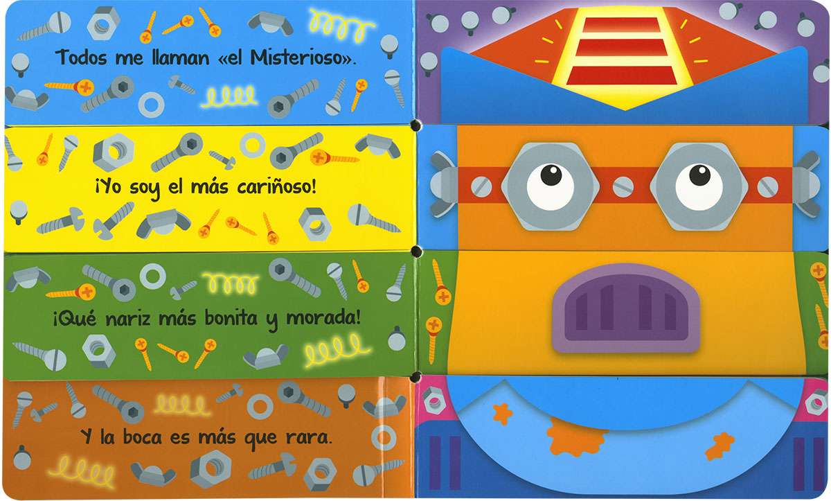 En este libro, vas a encontrar un montón de caras robóticas que podrás cambiar a tu gusto y mezclar con otras. Al final, mírate en el espejo: ¿quién te mira con esa cara?