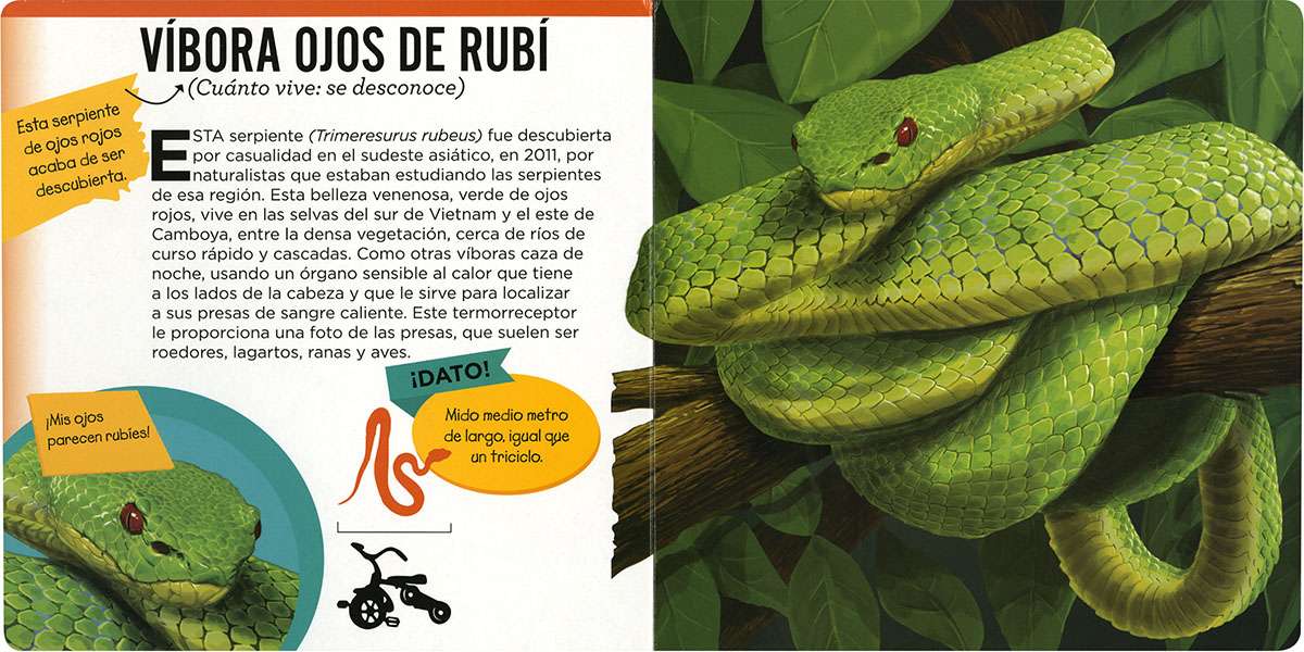 Descubre cómo cobran vida las serpientes con este libro de datos curiosos e ilustraciones formidables. Desde la serpiente cobra, con veneno suficiente como para matar a un elefante, hasta la anaconda, cuyas mandíbulas pueden abrirse para engullir a tres personas, estos animales te fascinarán como ningún otro.
