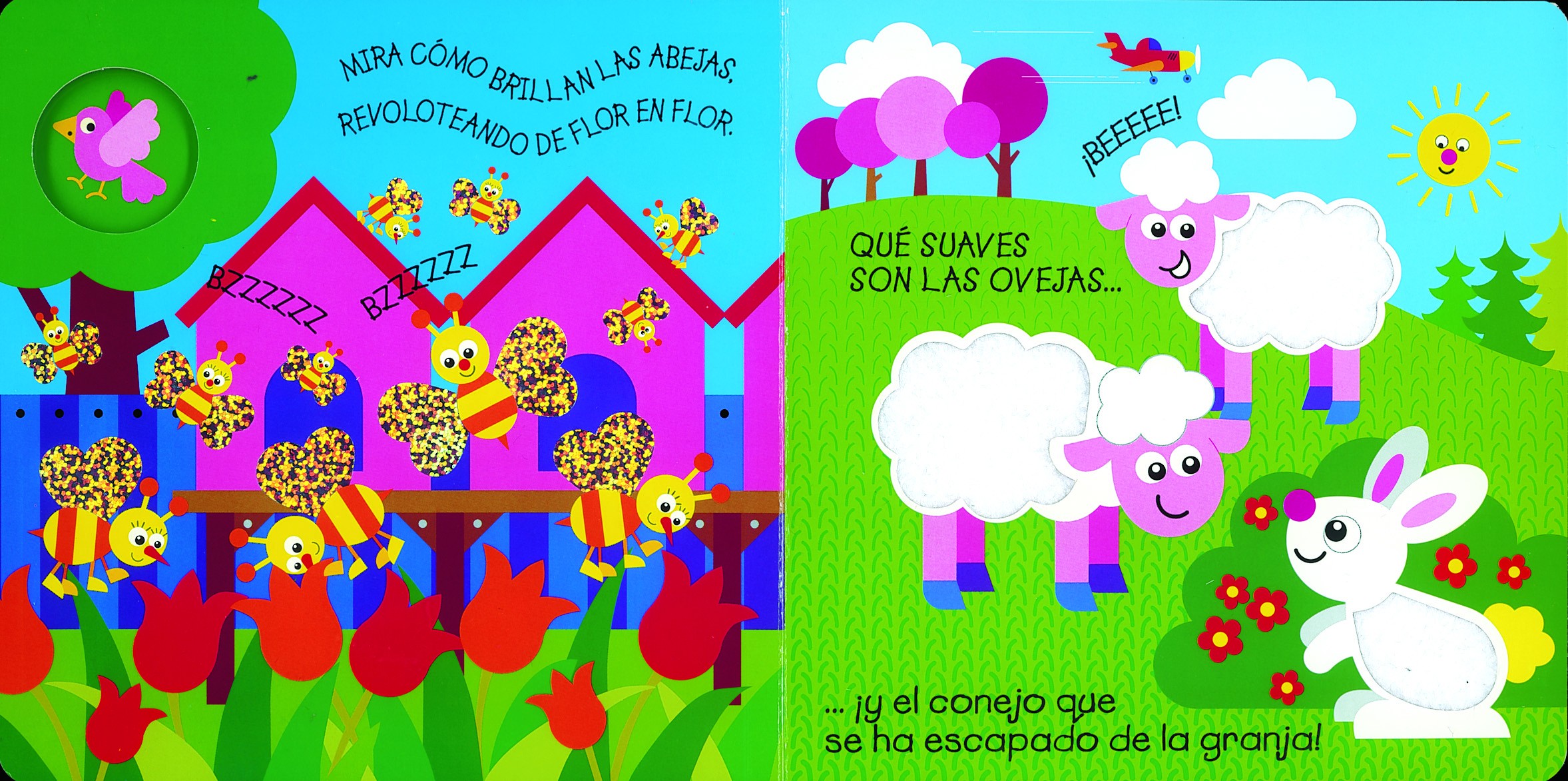 A los niños les gusta curiosear y tocarlo todo. Con los libros de esta colección aprenderán colores, números y muchos animales de forma divertida; en cada página encontrarán ilustraciones a todo color, estampaciones brillantes y superficies de diferentes texturas que les encantarán.