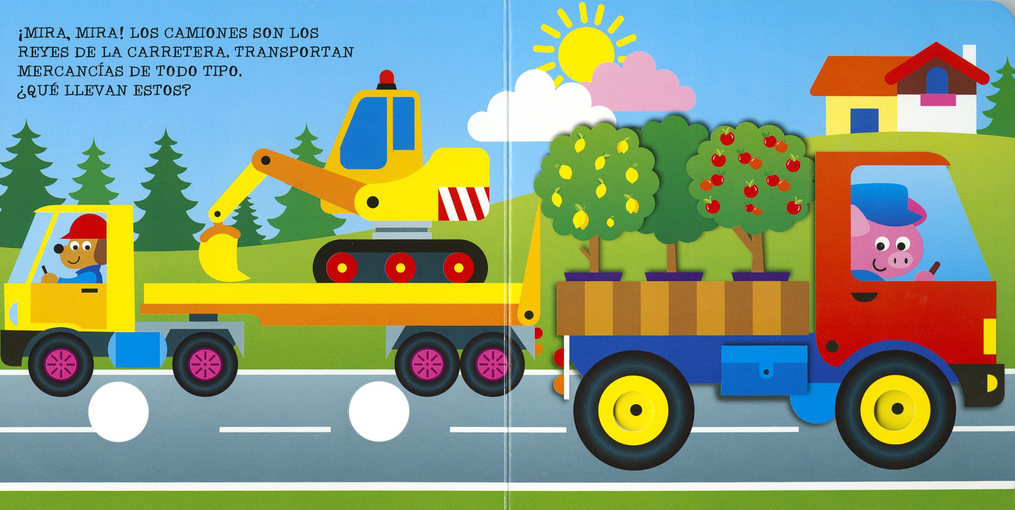 ¡Mira, mira! ¡Un coche de carreras! ¿Qué más habrá en este libro? Abre sus páginas y lo descubrirás.