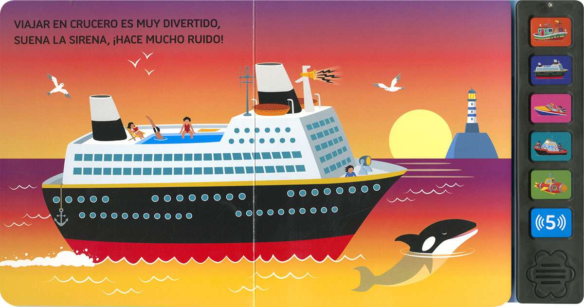 ¿Cómo suena un crucero? ¿Y una lancha motora? Diviértete con la lectura y escucha los sonidos de los barcos pulsando los botones de este libro.