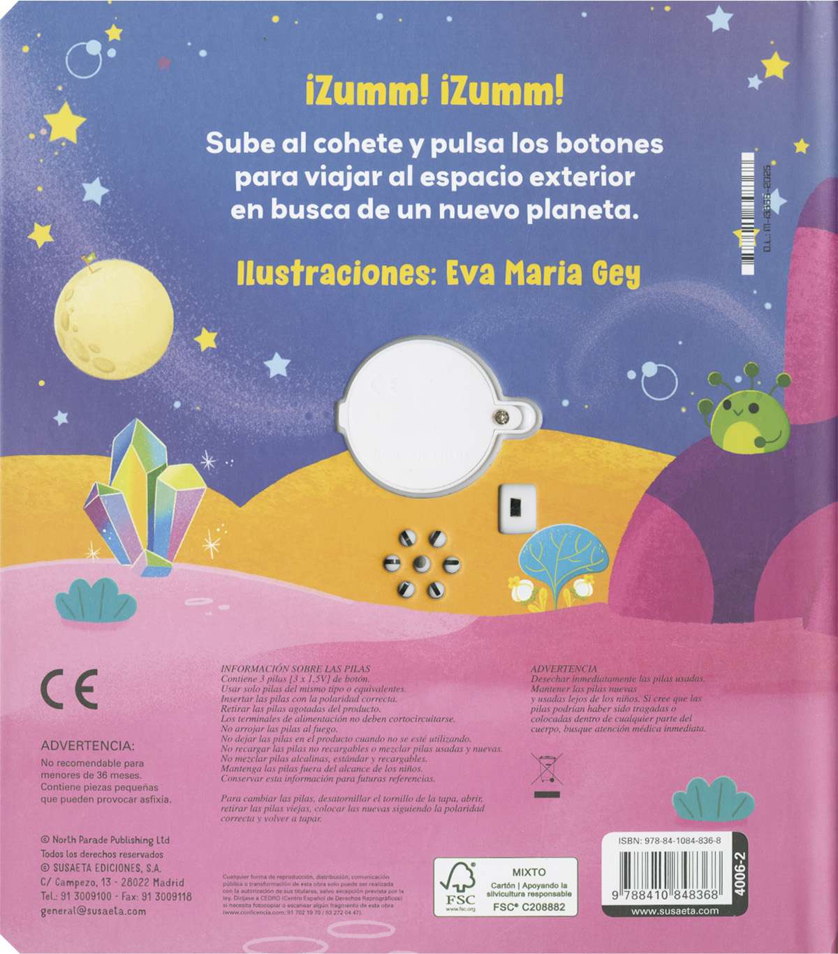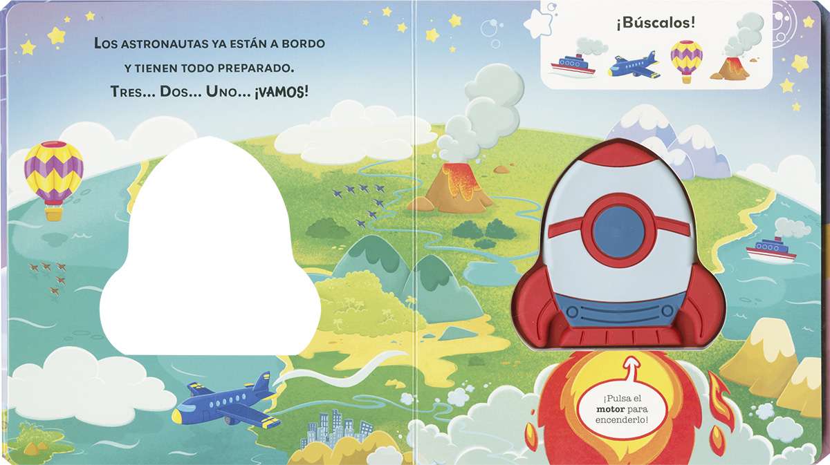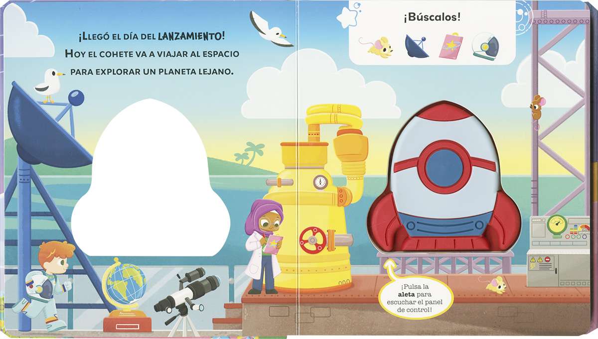 Este libro está repleto de sonidos, pero tendrás que encontrarlos... Pulsa en diferentes partes del cohete para escucharlos, ¡y viaja con él al espacio exterior! Un original libro de cartón con sonidos ocultos.
