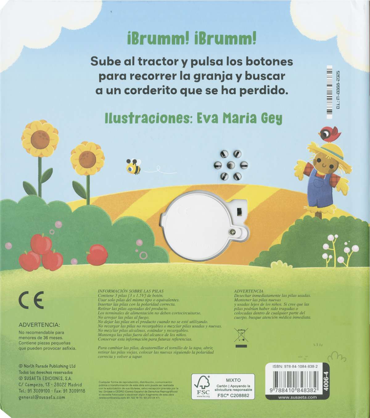Este libro está repleto de sonidos, pero tendrás que encontrarlos... Pulsa en diferentes partes del tractor para escucharlos, y acompaña al conductor a buscar a un corderito que se ha perdido. Un original libro de cartón con sonidos ocultos.