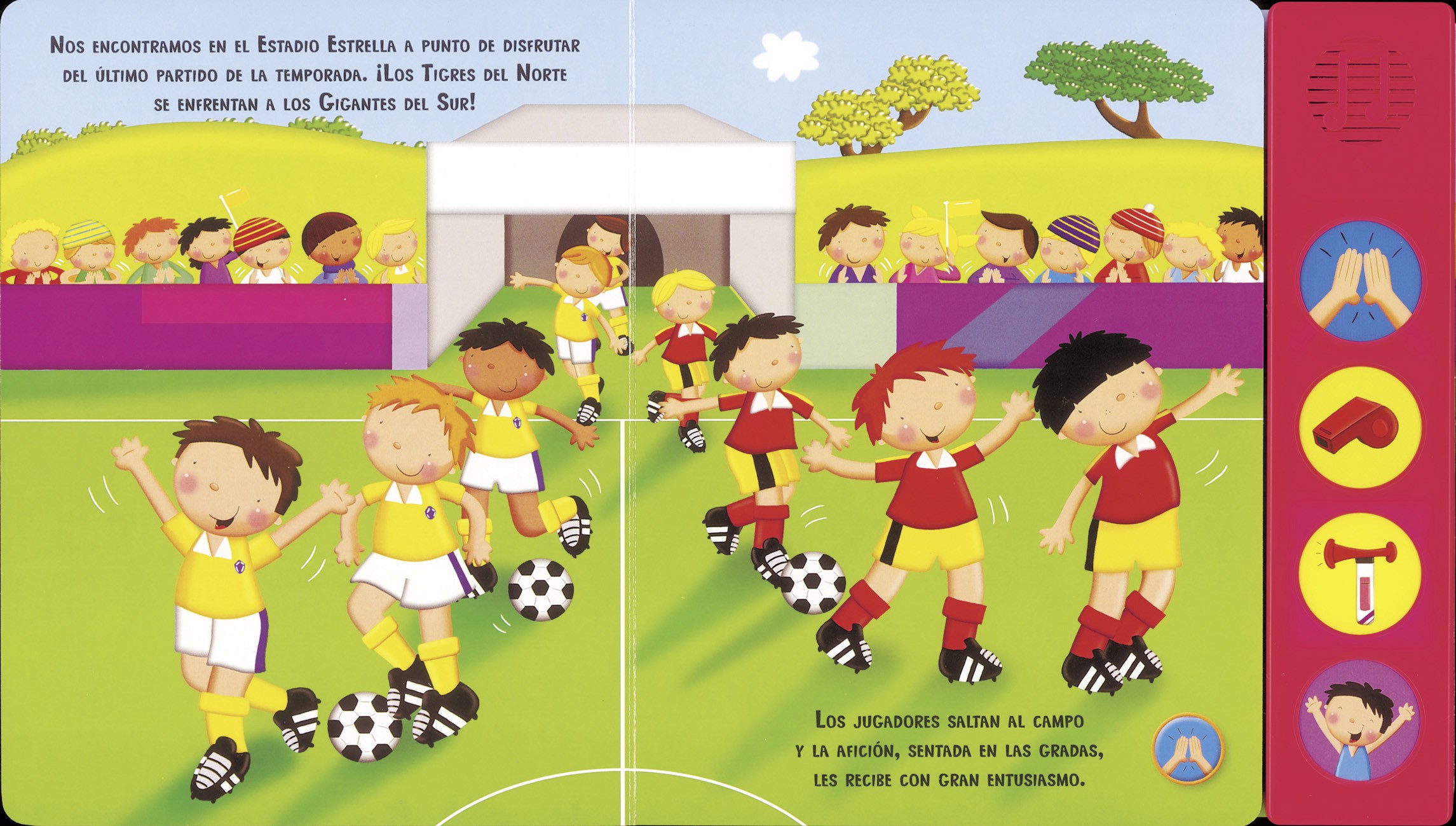 El partido más emocionante de la temporada está a punto de comenzar. ¡Pulsa los botones y escucha los divertidos sonidos de esta gran tarde de fútbol!