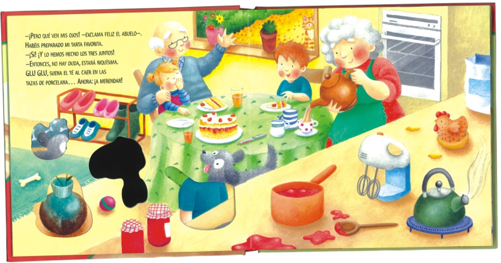 La abuela está preparando una rica tarta de fresa. Entra en su cocina junto a sus nietos y descubre qué aparatos utiliza y qué ruidos hace cada uno. Un libro muy divertido, con una simpática historia para que los pequeños lectores se diviertan leyendo y escuchando cada vez que aprietan el botón cómo suenan las máquinas.