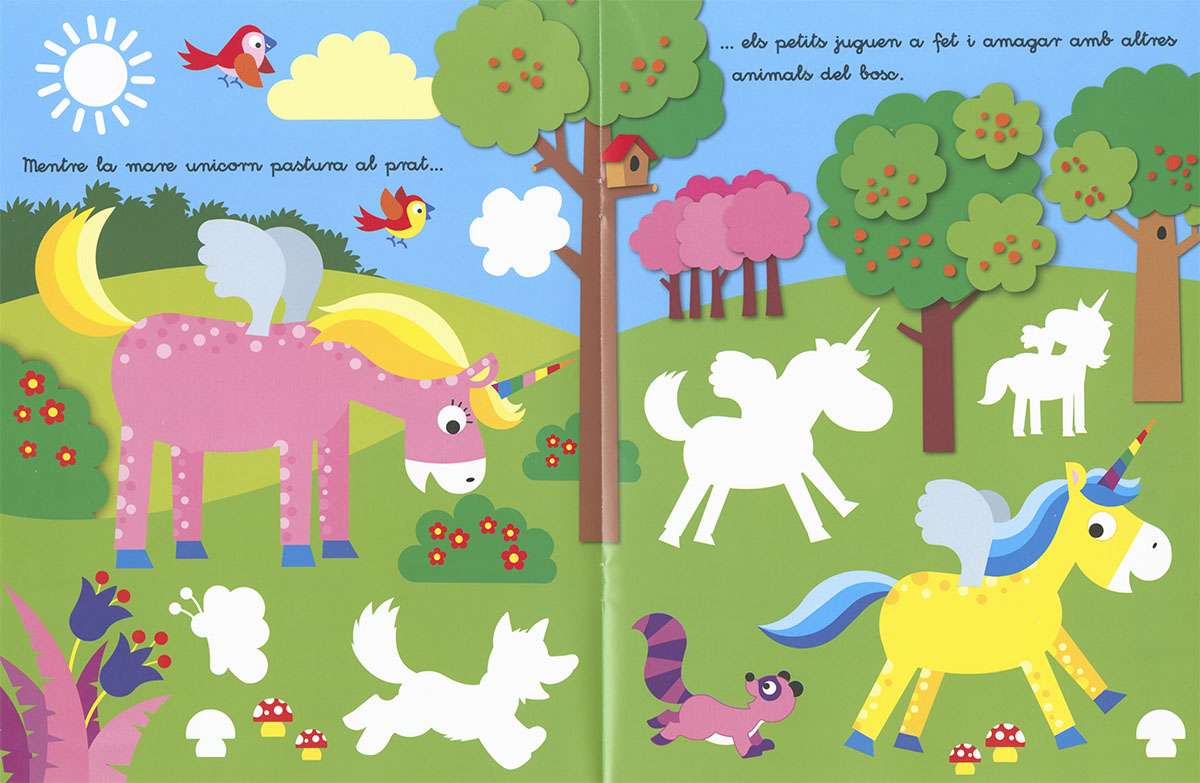 T´agraden els unicorns? Amb aquest llibre podràs gaudir de la lectura i divertir-te molt col·locant els adhesius al lloc corresponent.