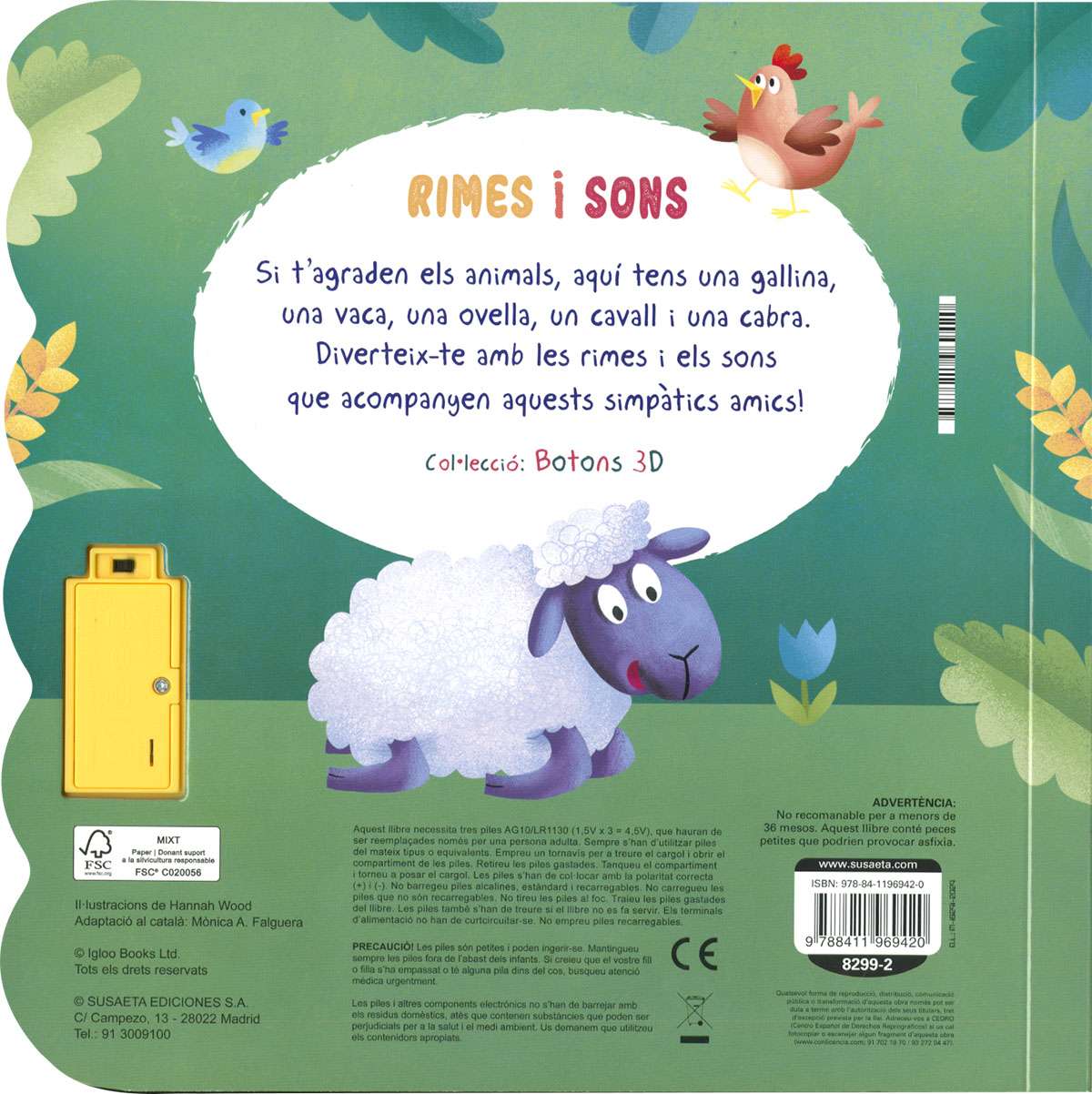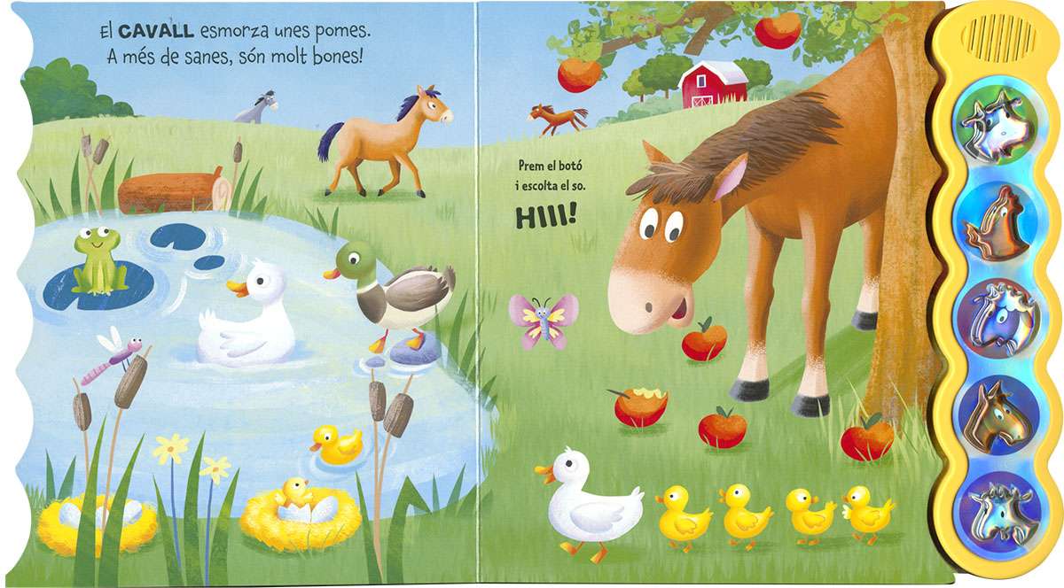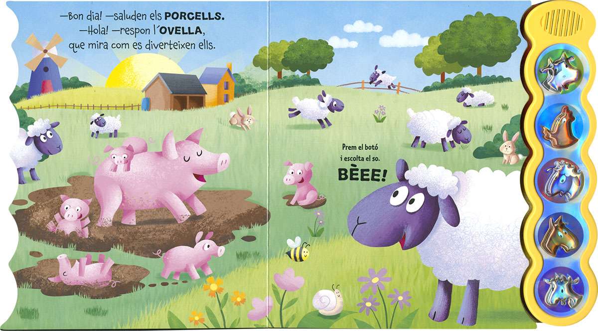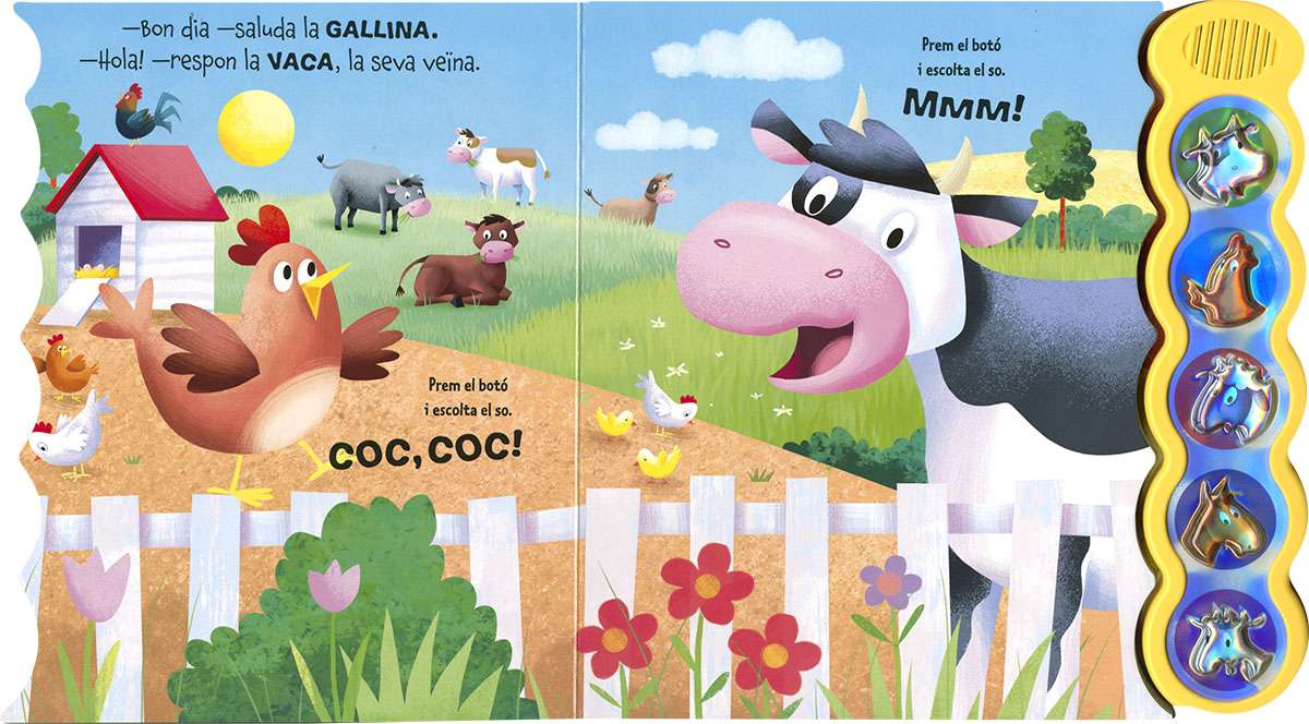 Es tracta d'un atractiu llibre infantil de sons que fascinarà als nens. Conté divertides il·lustracions que atraparan la seva atenció, i no es cansaran de prémer els botons una vegada i una altra per a sentir els animals de la masia. Una diversió assegurada!