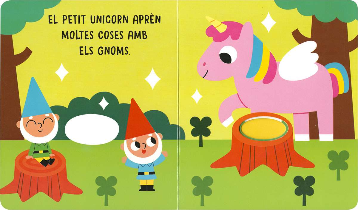 Al petit unicorn li encanta jugar amb les fades, les estrelles, els gnoms. El vols conèixer una mica més? Obre les pàgines d'aquest simpàtic llibre encunyat de cartró, ple d'acolorides il·lustracions.