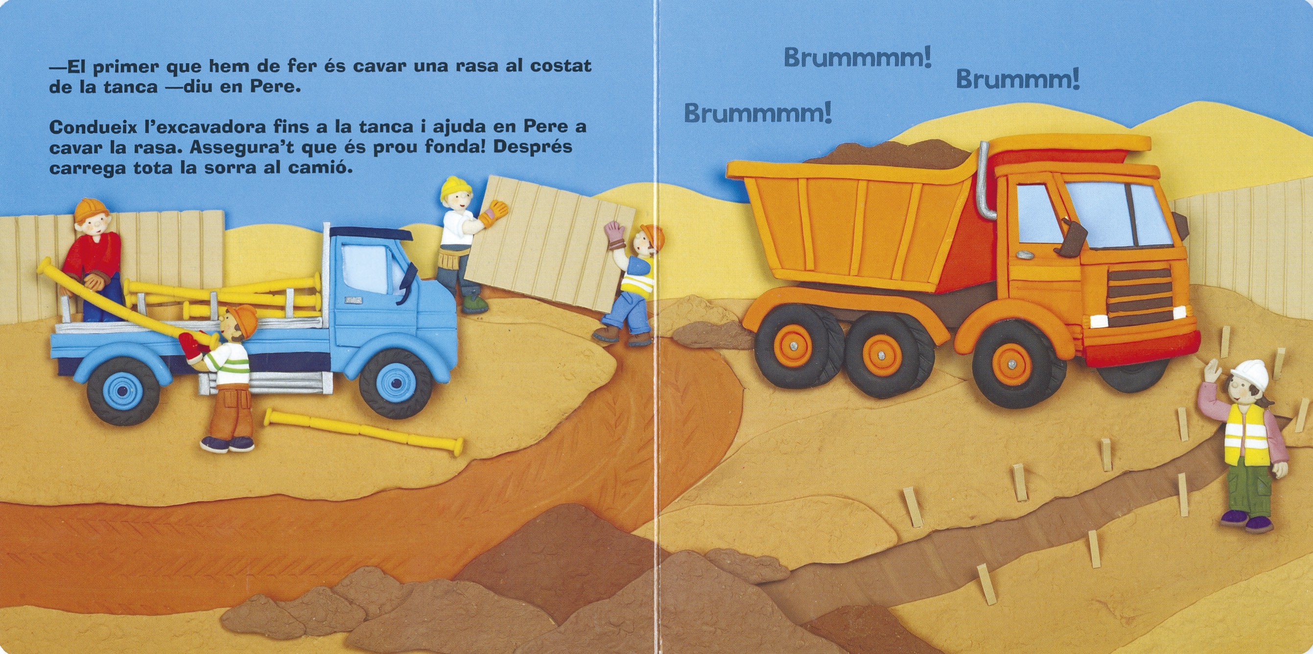 Descobreix llegint aquest llibre com n'és de dur treballar en una obra, mentre jugues amb l'excavadora que sempre és de gran ajuda.
