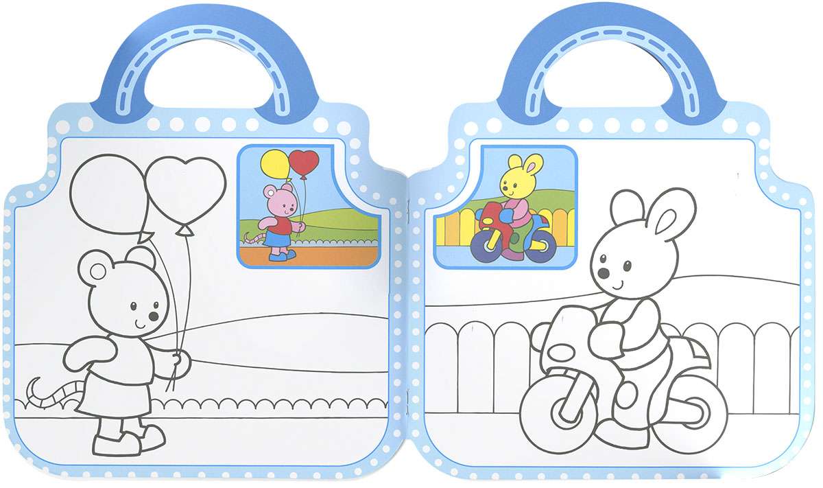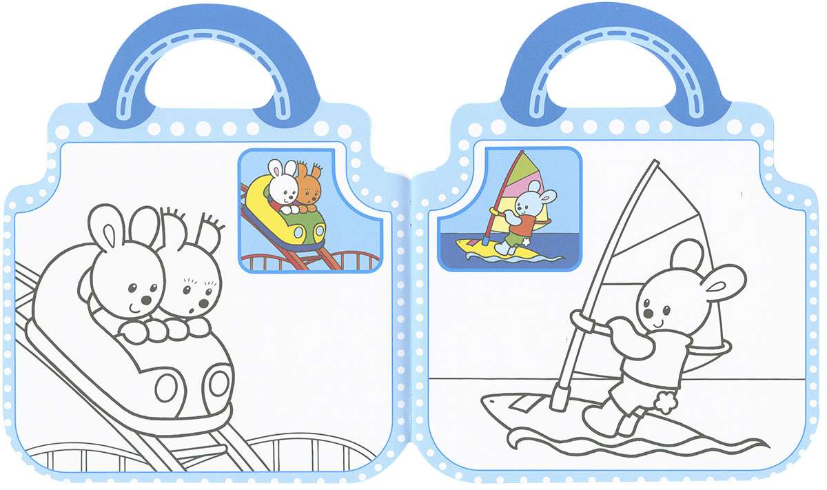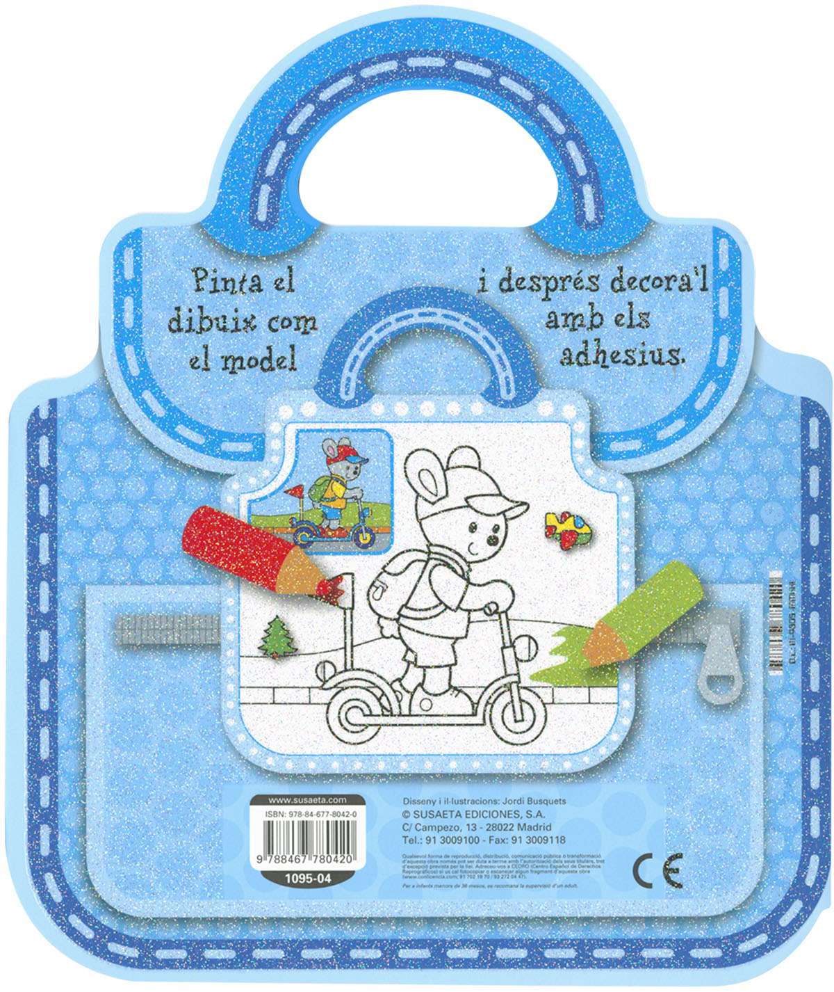 Obre el teu llibre en forma de motxilla de mà i omple les pàgines de color; després, decora-les amb els adhesius: en tens un munt per a escollir!