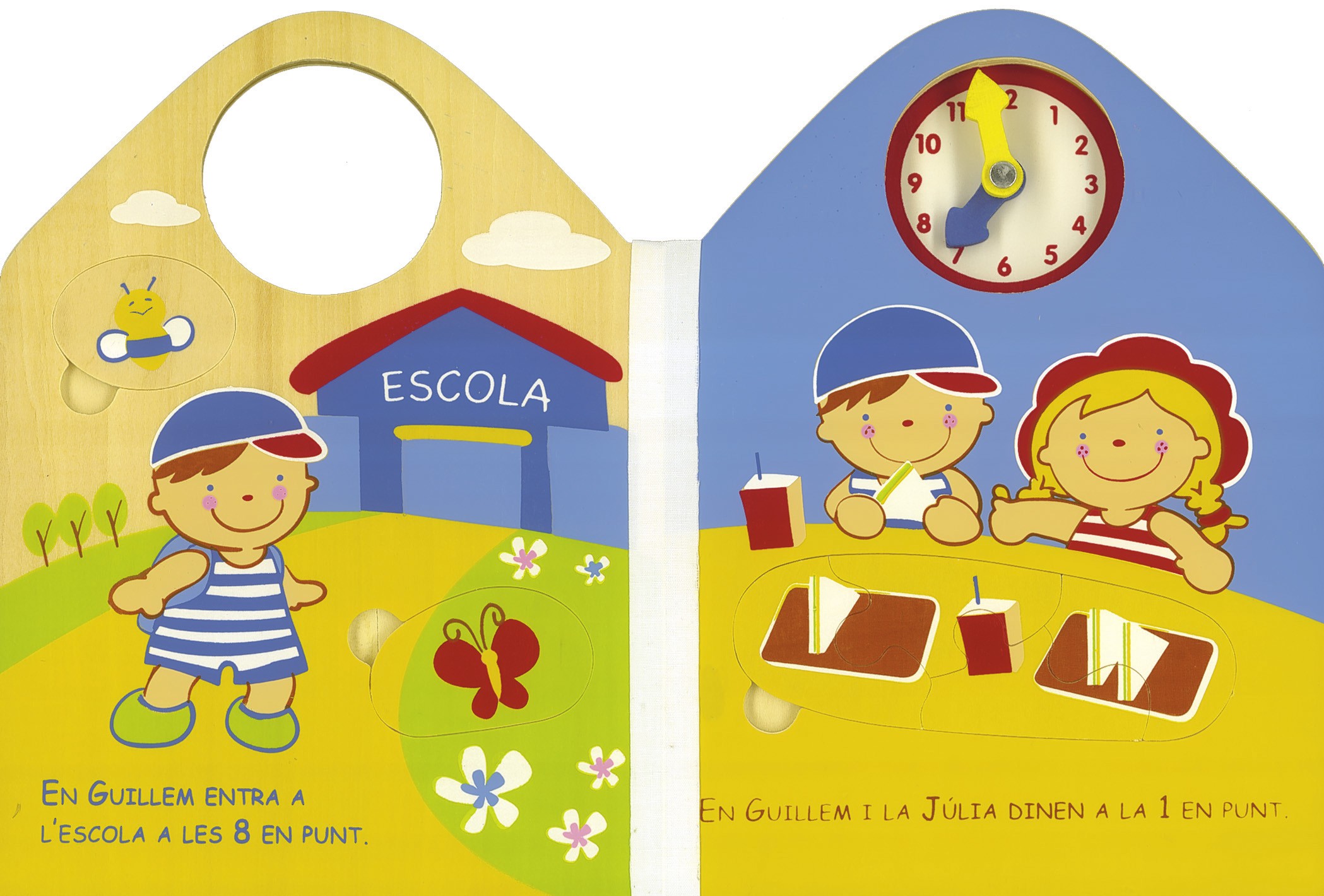 Aprèn les hores amb l'ajuda d'en Guillem i la Júlia! Diverteix-te fent els puzles i encaixant les peces d'aquest bonic llibre de fusta.