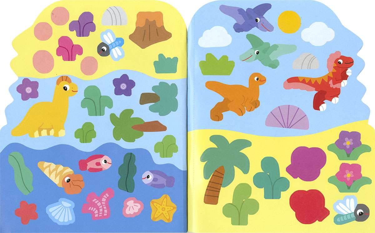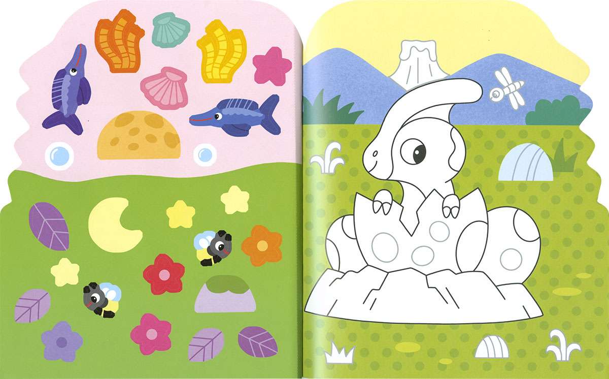 Un montón de dinosaurios te esperan dentro de este libro. En cada página encontrarás un escenario en el que podrás pegar las grandes pegatinas a todo color de las figuras que faltan y colorear el resto como a ti más te guste. ¡Ya verás qué bien te lo pasas!