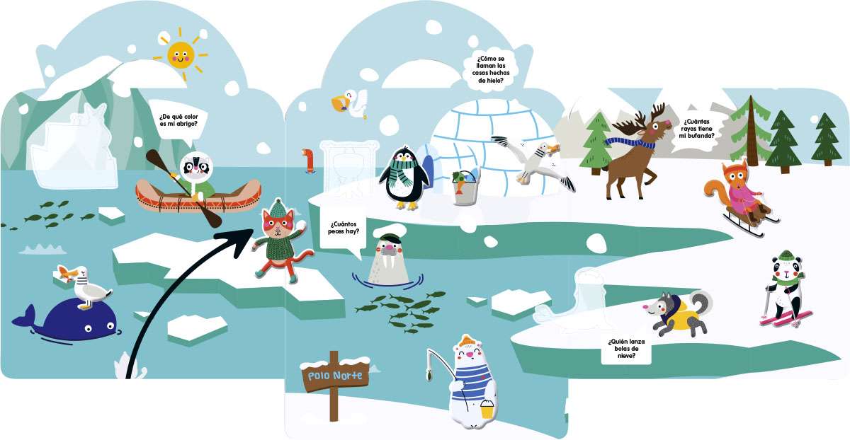 Juega con las pegatinas de este libro colocándolas donde prefieras y cuantas veces quieras: las pegatinas de gelatina se pueden despegar, ¡así puedes inventar un montón de aventuras distintas en el polo norte!