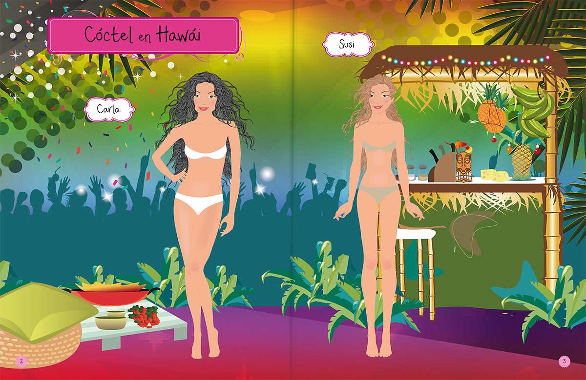Viste a las modelos de este libro con los trajes más glamurosos y originales y llévalas de fiesta. Completa los distintos escenarios de sus páginas con las pegatinas que encontrarás en el interior.