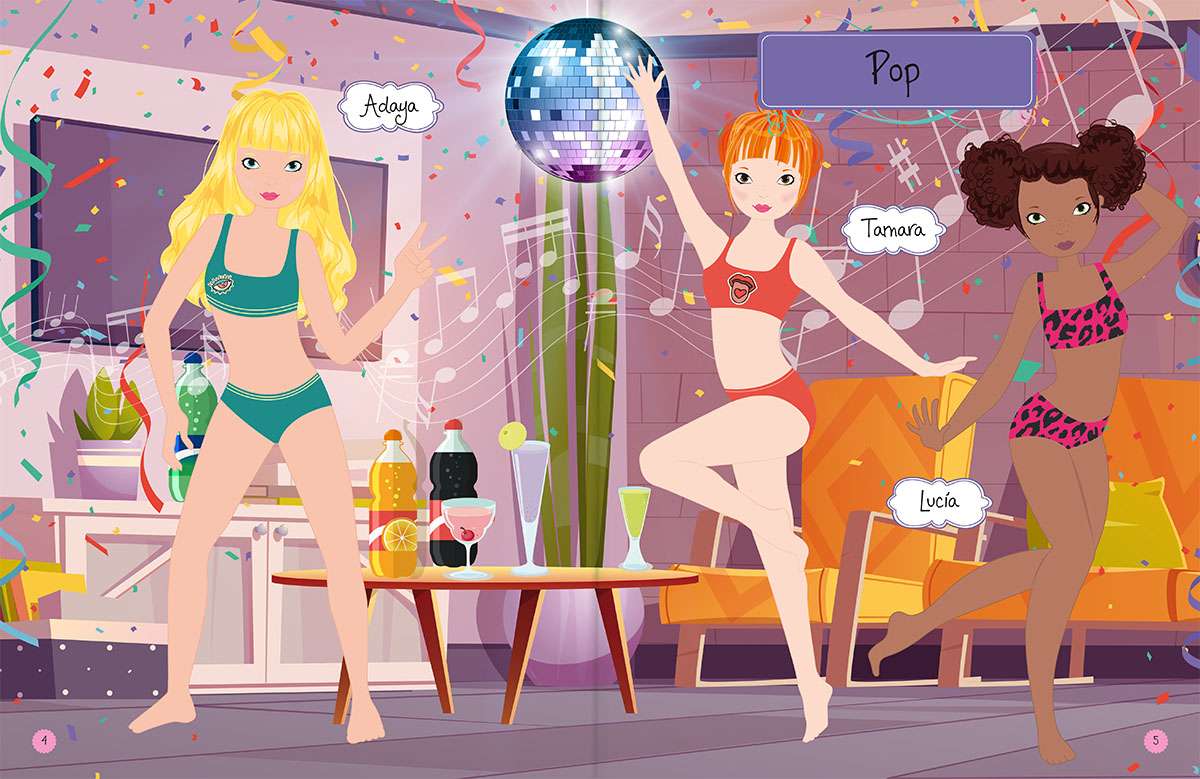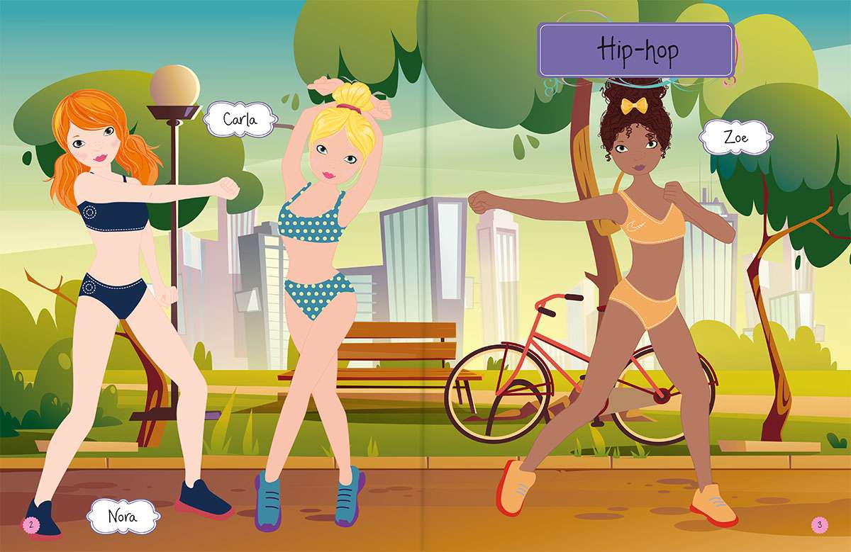 Viste a las bailarinas de este libro con la ropa de baile más moderna, cómoda y sorprendente. Completa los distintos escenarios de sus páginas con las pegatinas que encontrarás en el interior.