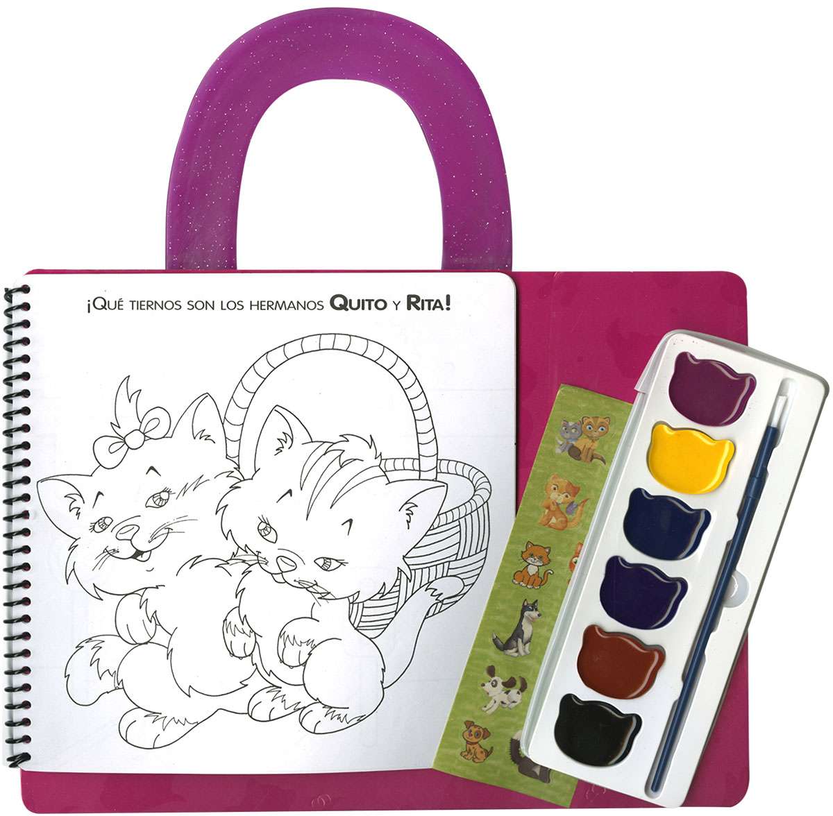 Un cómodo maletín para que lleves contigo las acuarelas, las pegatinas y el libro, y te sientes a dibujar ¡donde te apetezca! ¡Pásalo en grande con este fantástico libro de colorear!