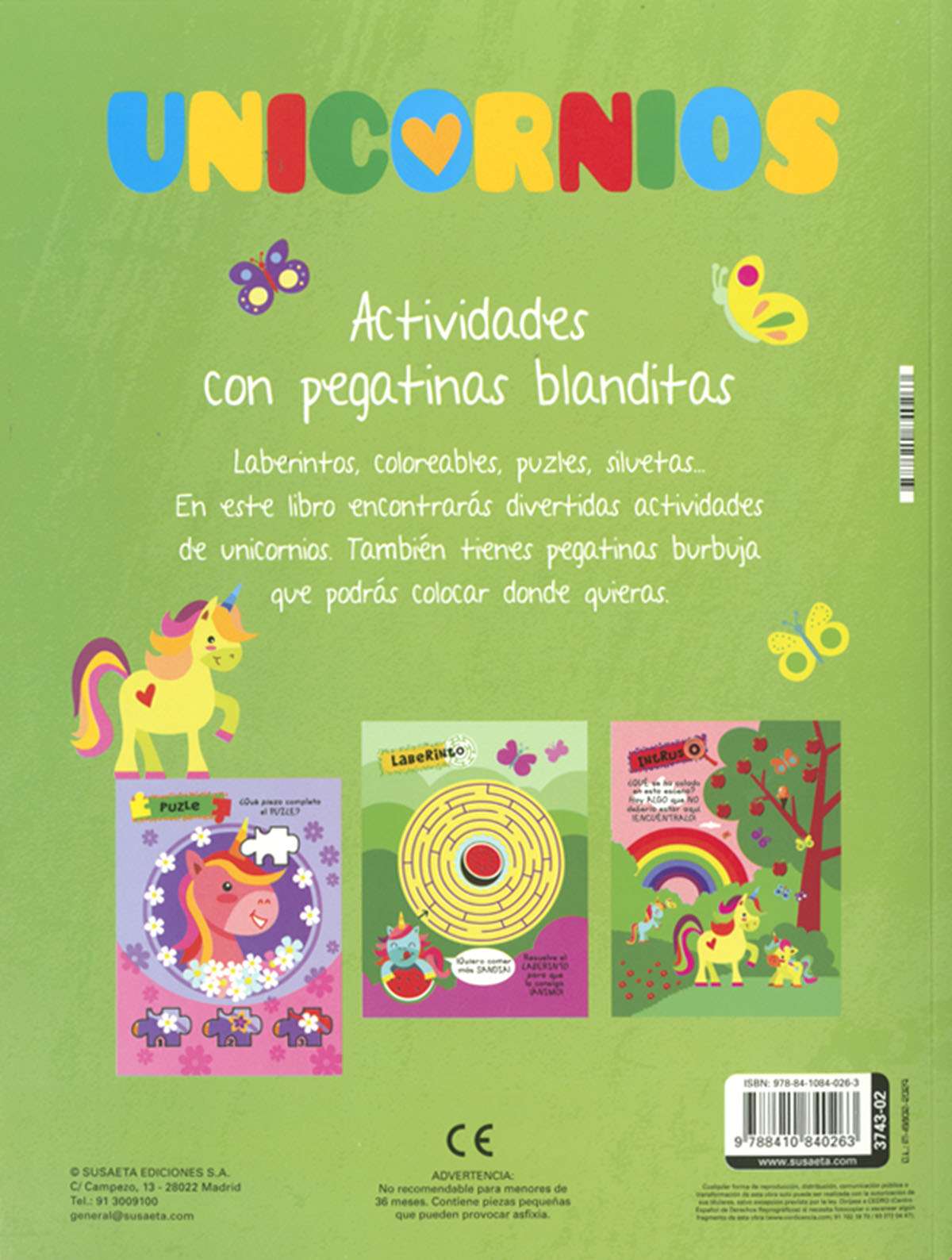 Laberintos, coloreables, puzles, siluetas, diferencias... En este libro encontrarás divertidas actividades en torno a los unicornios. También tienes pegatinas burbuja que podrás colocar donde quieras.