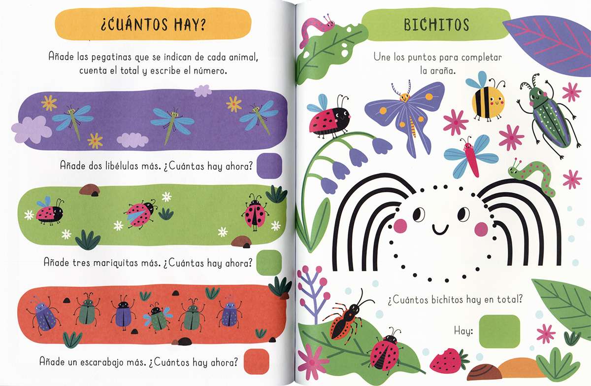 Conoce a un montón de animales divertidos con este libro de actividades. ¡Une los puntos, busca diferencias, dibuja, colorea, recorre laberintos y diviértete con las pegatinas!