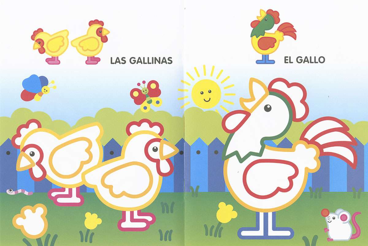 Libro de colorear para los más pequeños, con divertidos dibujos de trazo grueso y colores básicos. Perros, gatos, conejos, dinosaurios, elefantes, loros..., los animales más conocidos y queridos para que los niños disfruten coloreando.