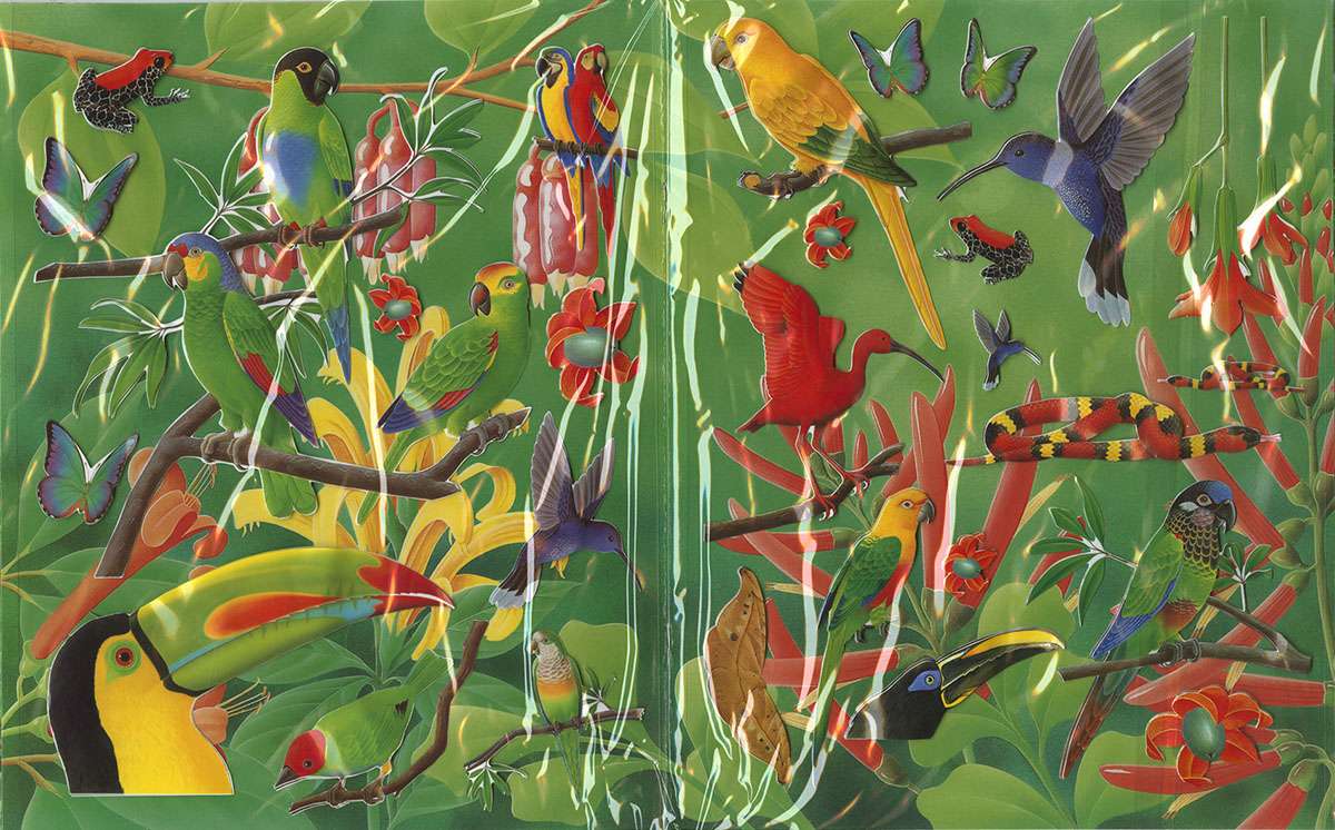 Diviértete creando tus propios escenarios con las pegatinas que encontrarás en el interior mientras descubres el mundo de los animales de la selva.