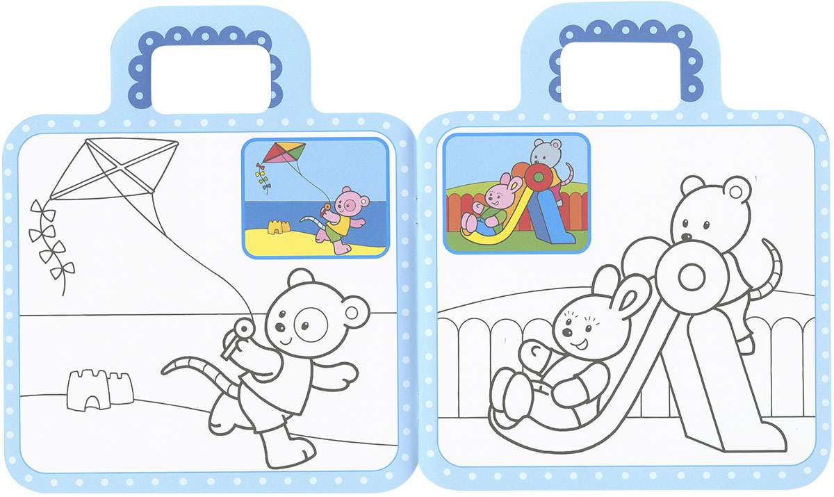 Abre tu libro en forma de maleta y llena sus páginas de color; después, decóralas con las pegatinas: ¡tienes un montón para elegir!