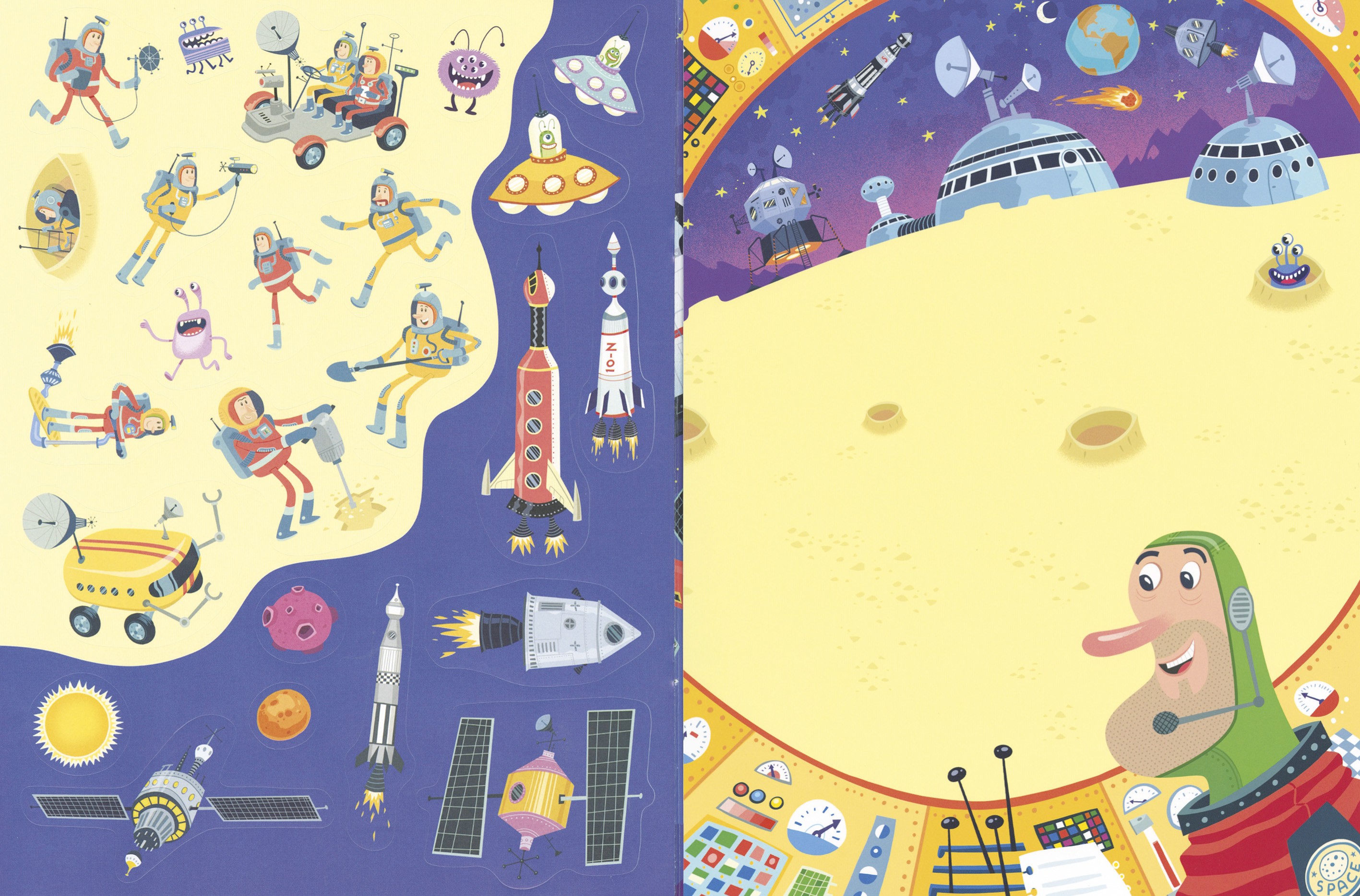 Completa y decora este gran escenario del espacio con más de 40 pegatinas divertidísimas. Crea tu propio póster y pásalo en grande echándole imaginación.
