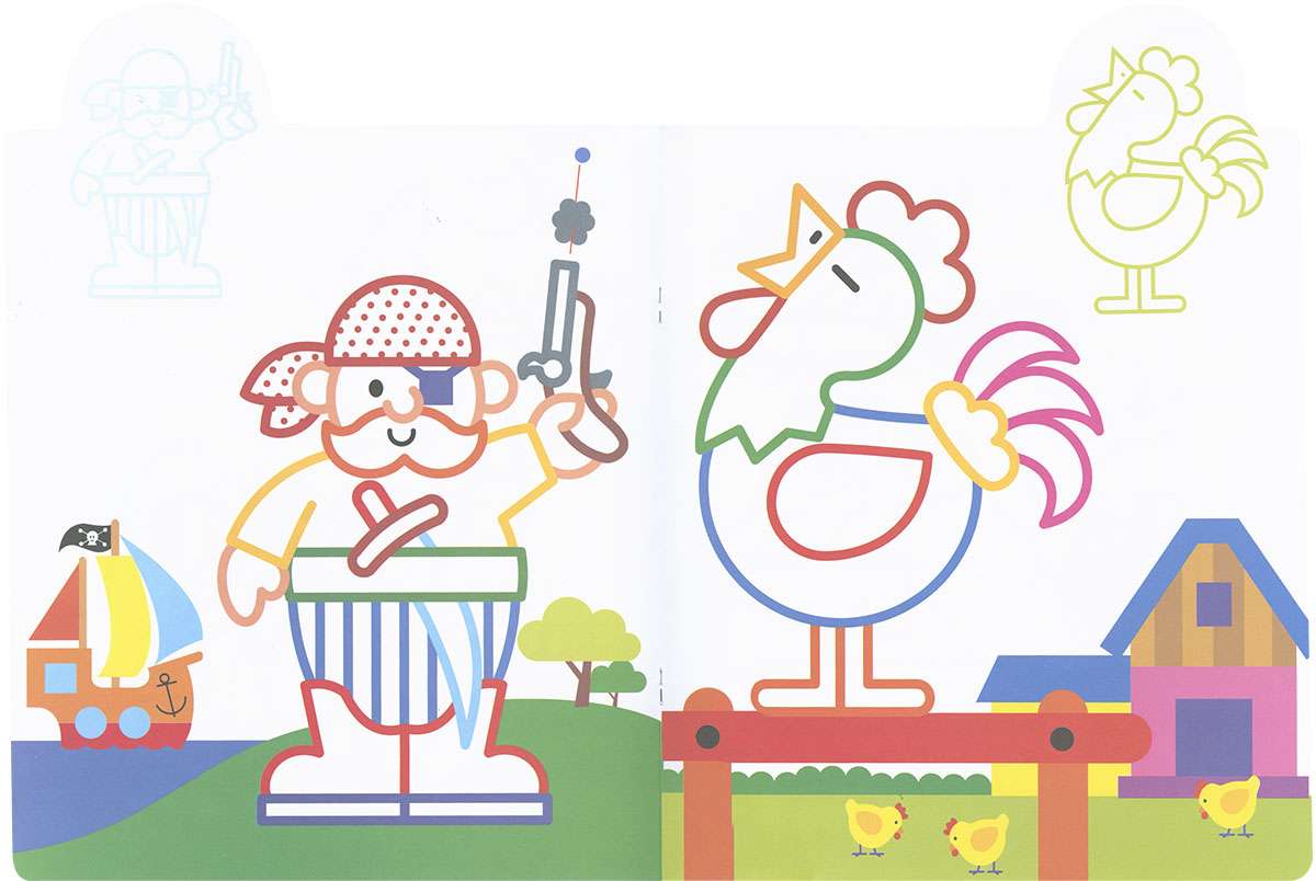 Coloca la pegatina en el lugar que le corresponda y colorea el dibujo. Un libro con dibujos y pegatinas adaptados a la edad de los niños mas pequeños para que aprendan a colorear