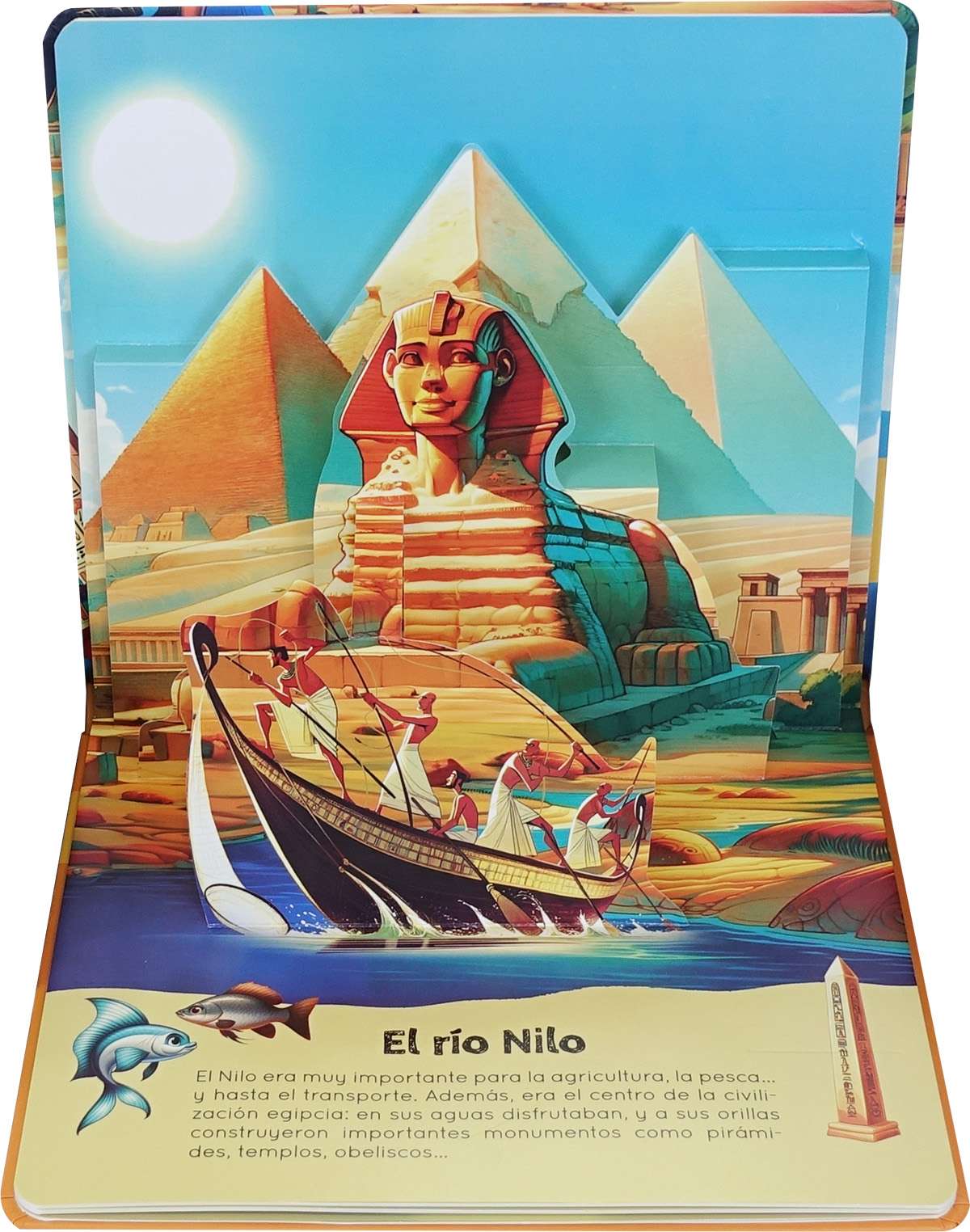 Descubre con pop-ups las maravillas del Antiguo Egipto: las pirámides, el poder de los faraones y de las reinas... ¡y disfruta véndolos en 3D!